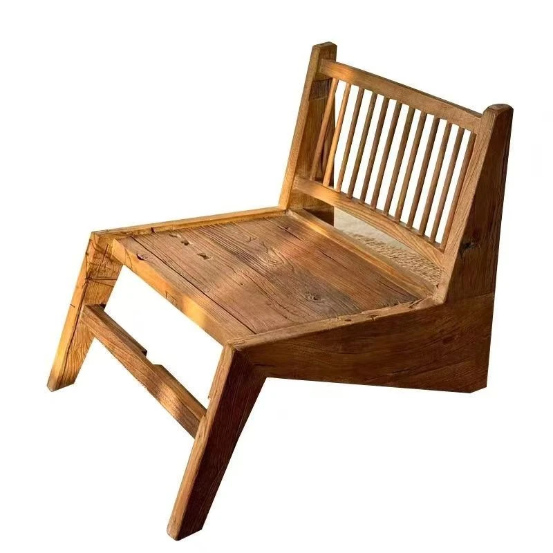 おしゃれな北欧スタイルの老榆木リクライニングソファ - 新中式デザイン、バルコニーにぴったりな快適な一人掛け椅子。リラックスした時間を楽しむための究極の選択!