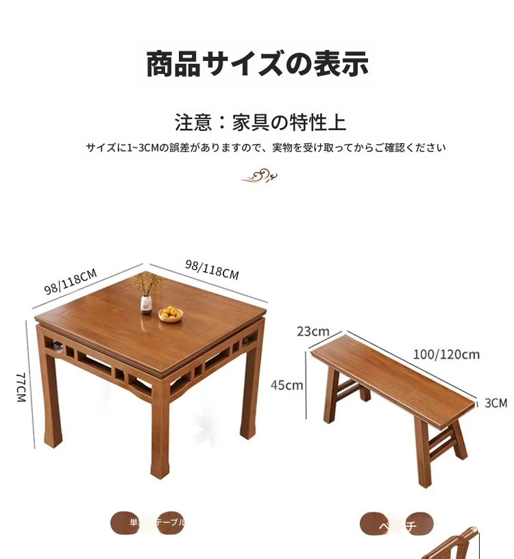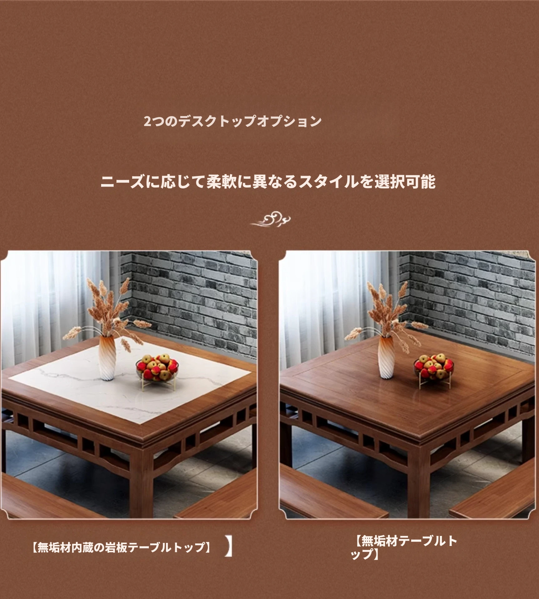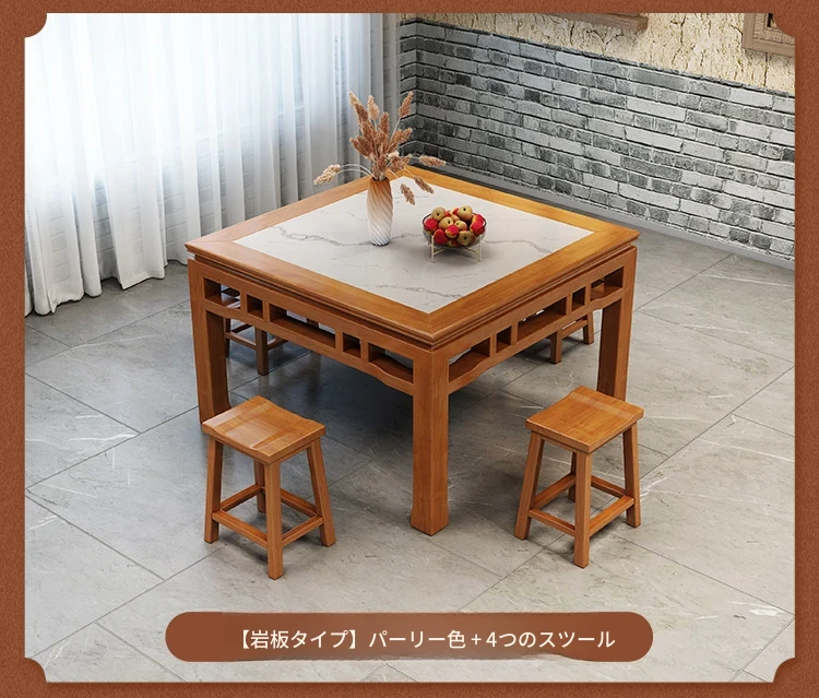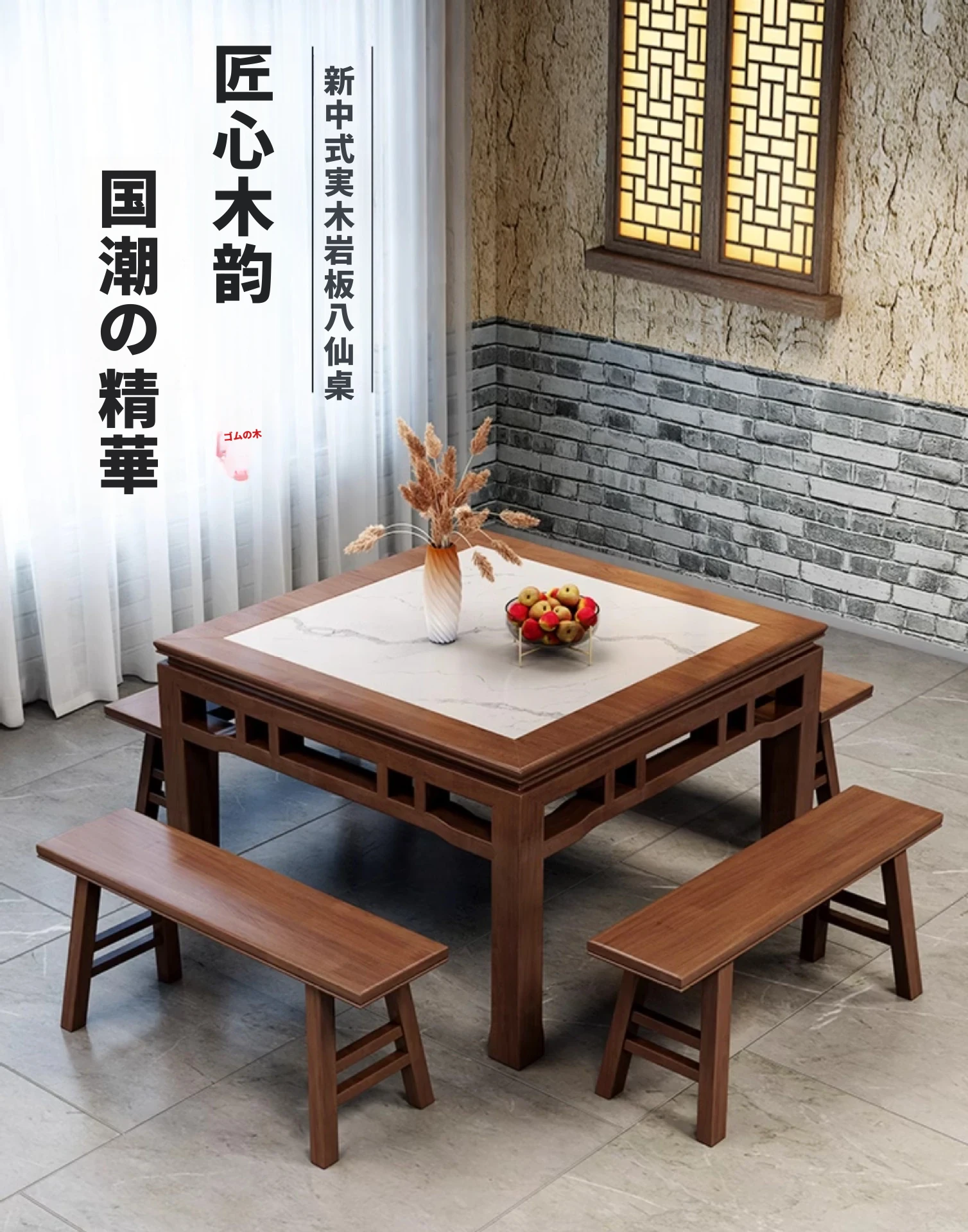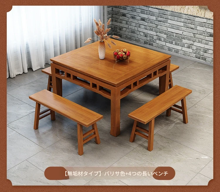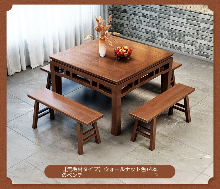 全実木製の八仙テーブル - 中華風の懐かしい正方形ダイニングテーブル。家庭やレストランに最適!コンパクトで使いやすく、食事の時間を特別なひとときに演出します。