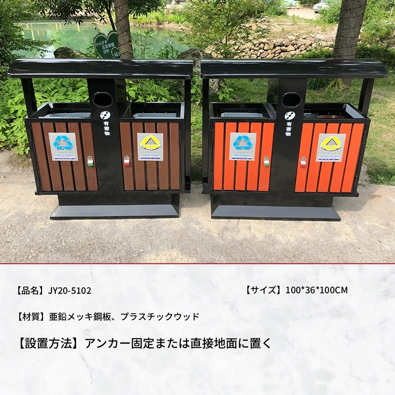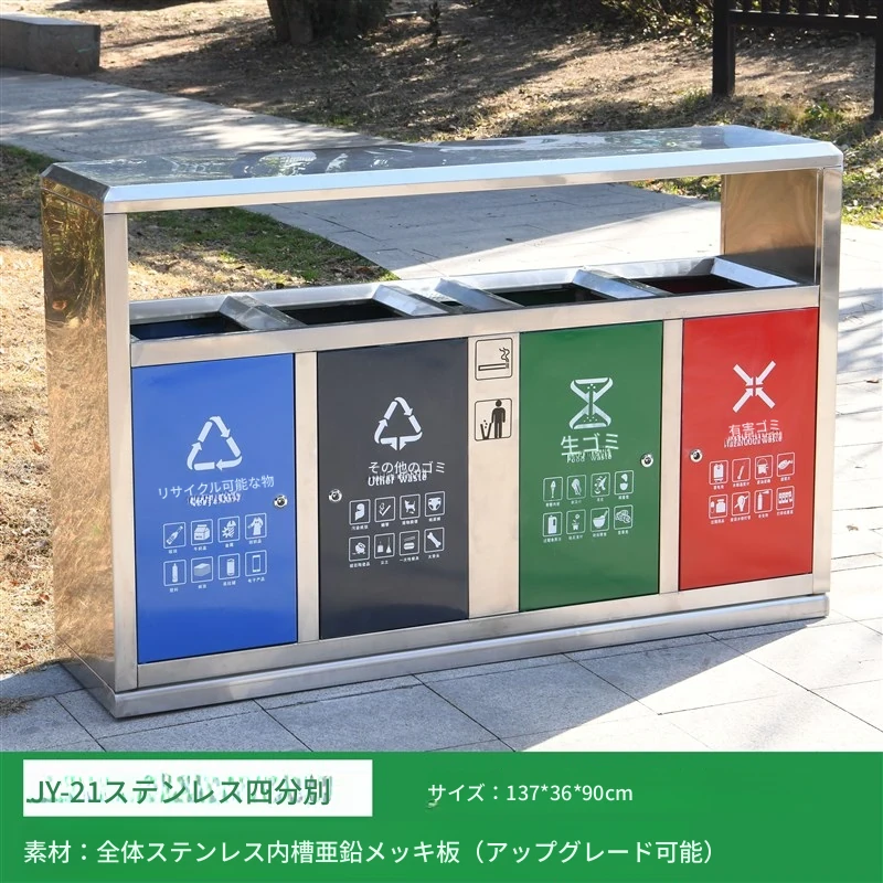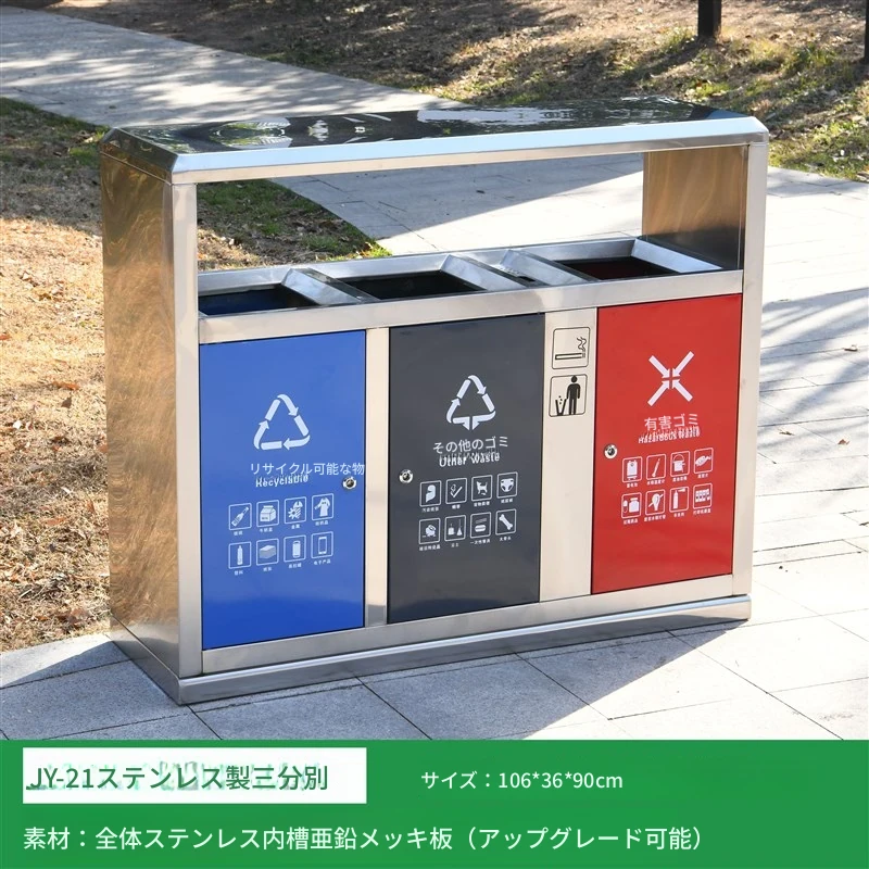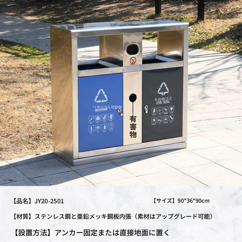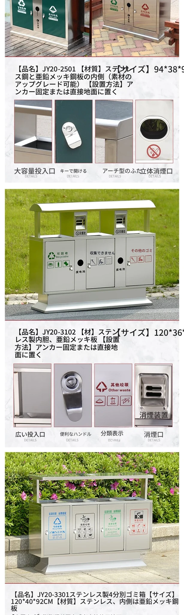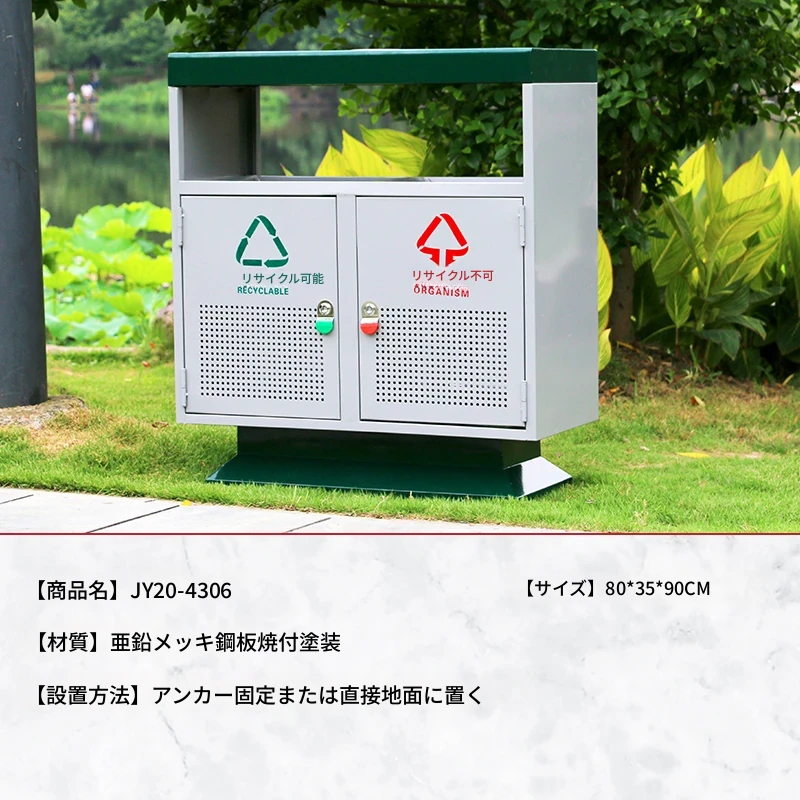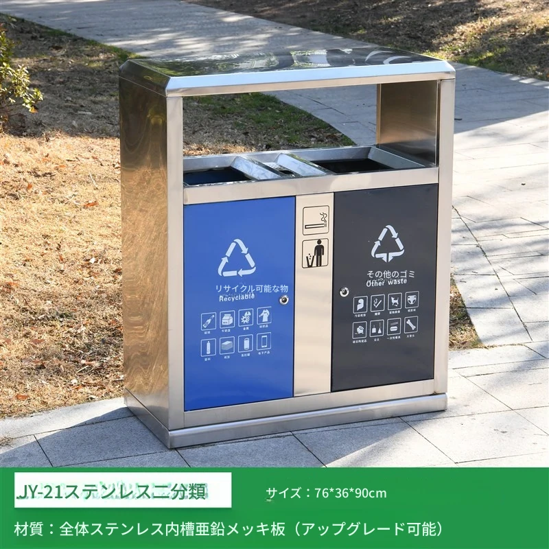 ステンレス製大型屋外ゴミ箱 - スマートな分別が可能な二重バケツ、コミュニティや公園、観光地に最適!清潔でスタイリッシュなデザインで、環境保護にも貢献します。