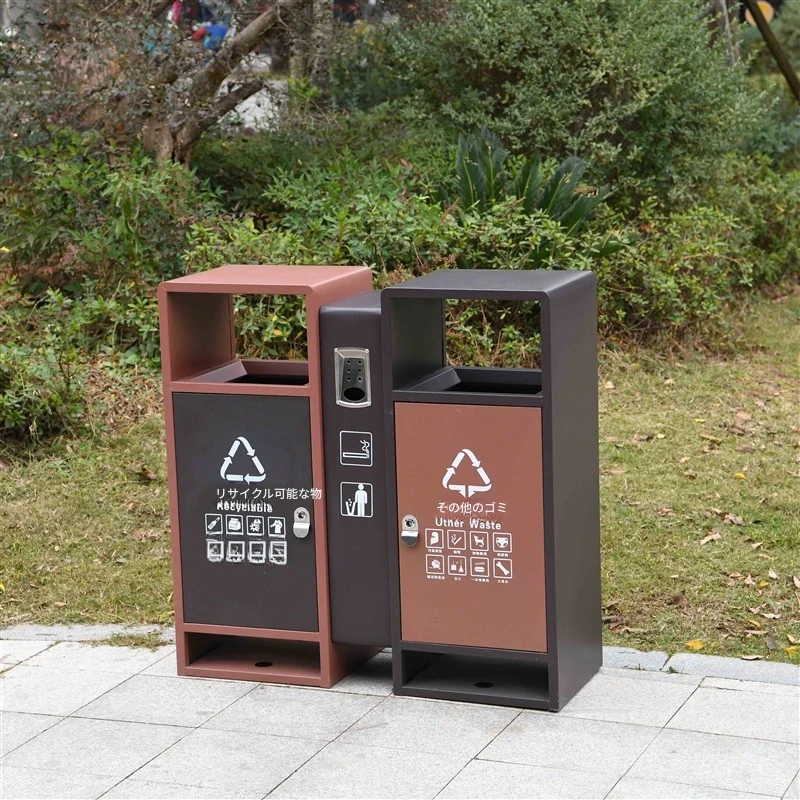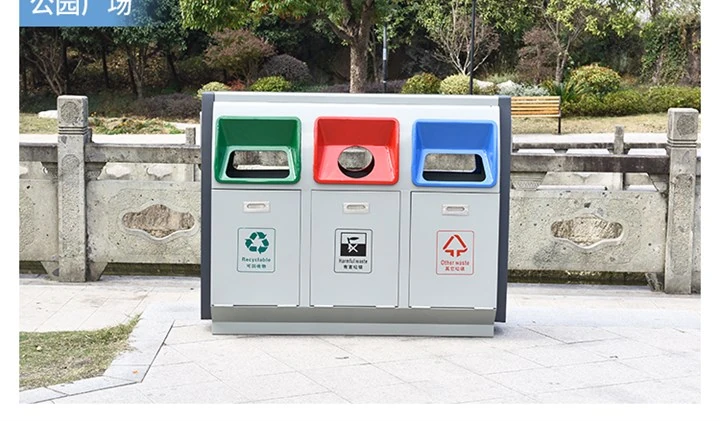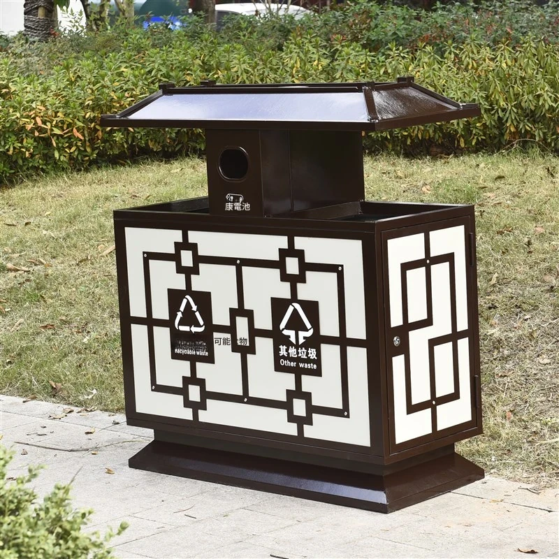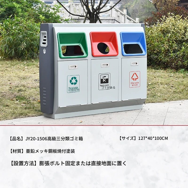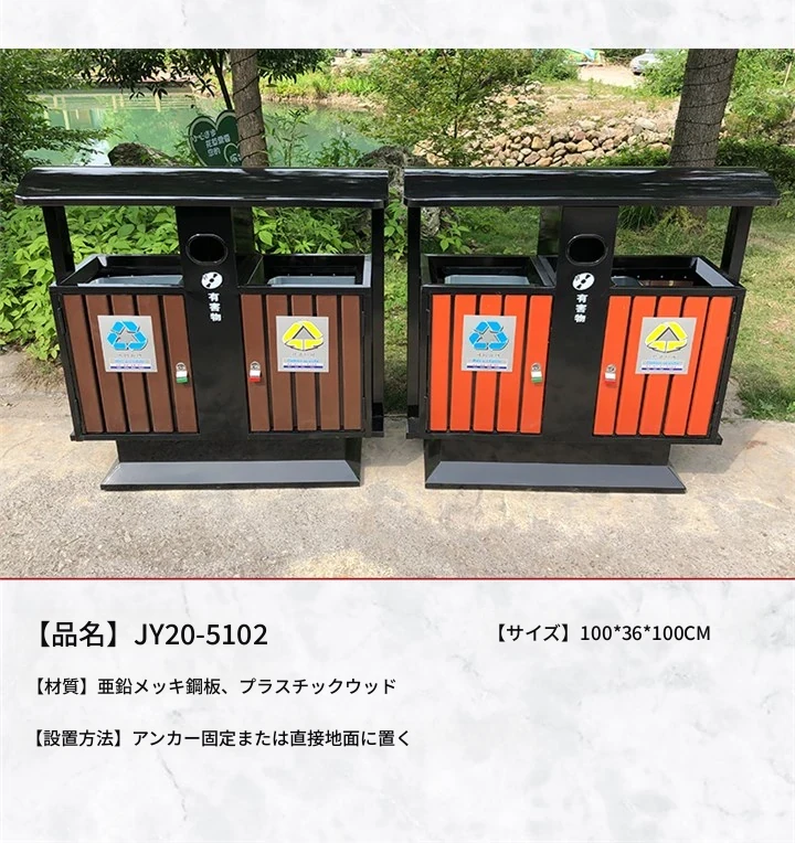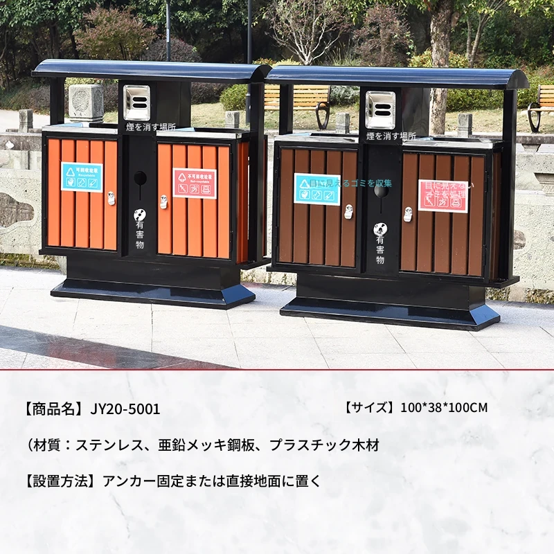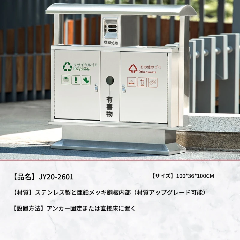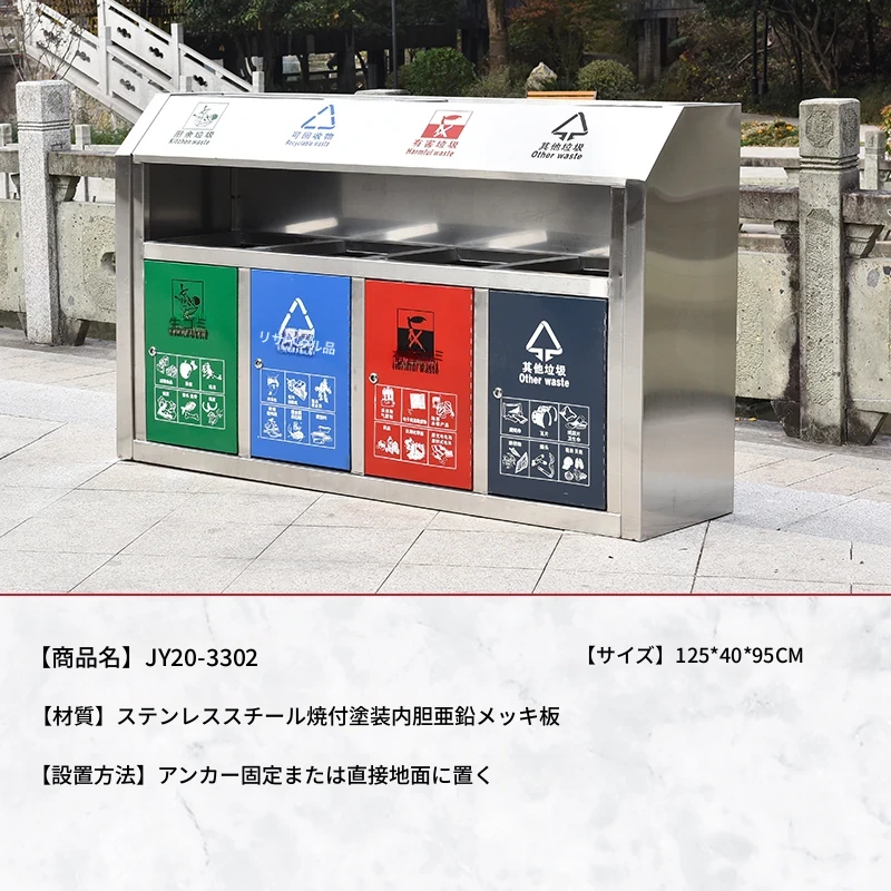 ステンレス製大型屋外ゴミ箱 - スマートな分別が可能な二重バケツ、コミュニティや公園、観光地に最適!清潔でスタイリッシュなデザインで、環境保護にも貢献します。