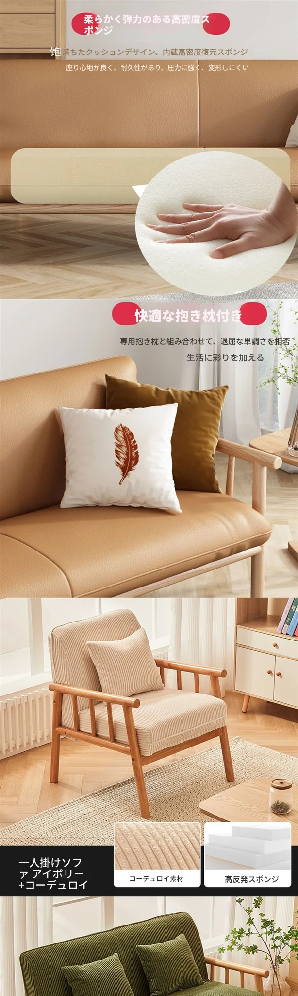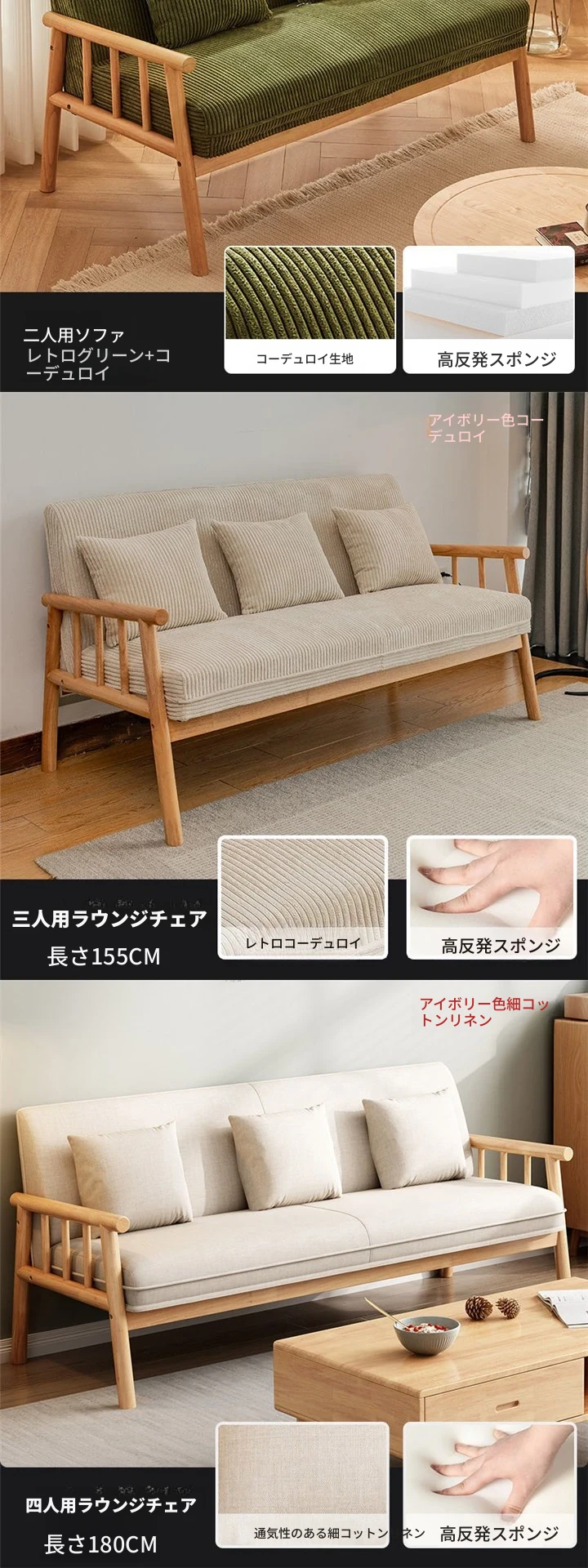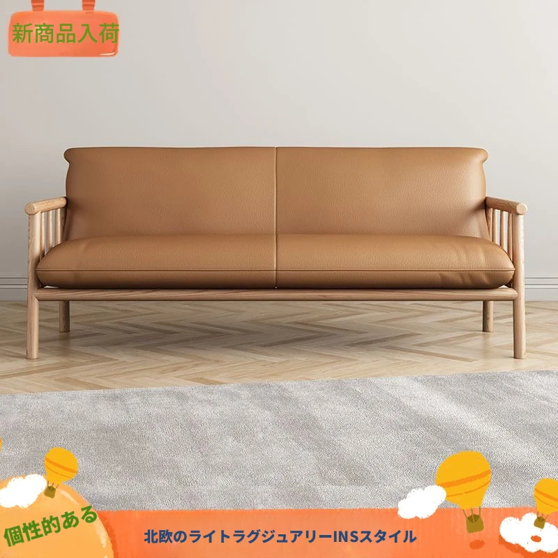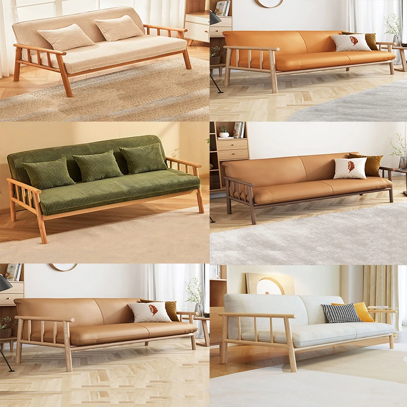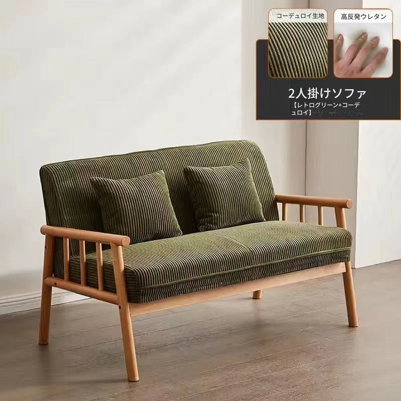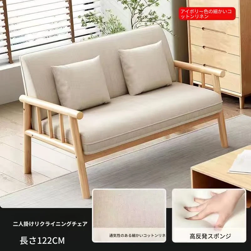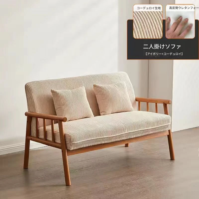 簡易実木ファブリックソファ|リビングや小型アパートに最適!2人掛け&3人掛けのダブルデザイン|民宿や家庭用にもぴったり!快適さとスタイルを両立したおしゃれな家具。