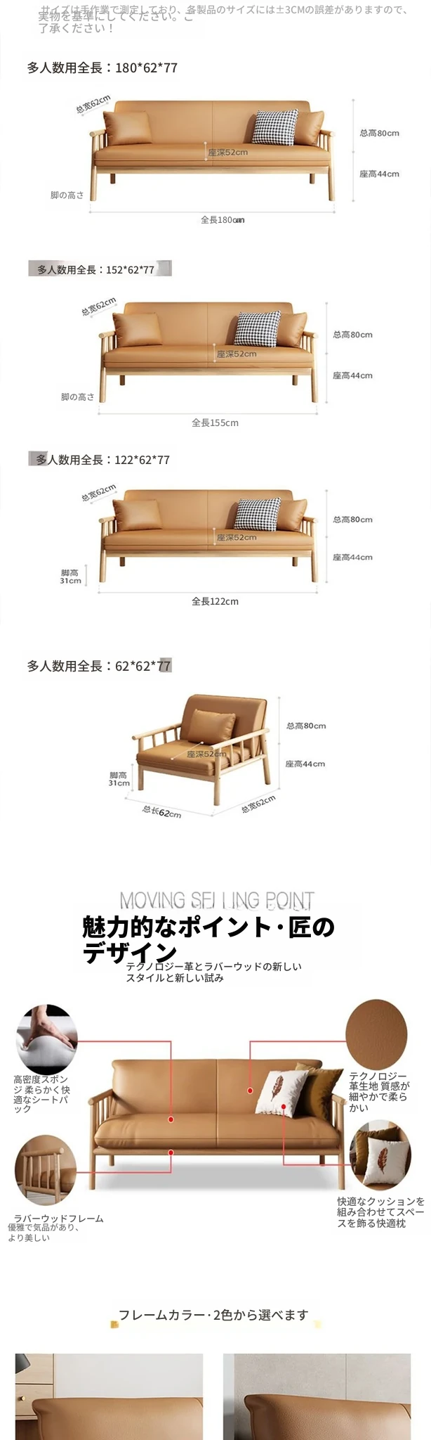 1人掛け長さ0.62メートル【原木色】