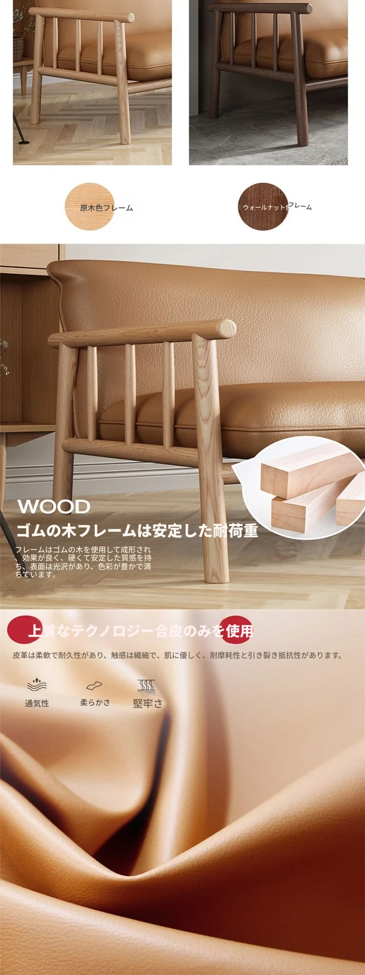 軽奢オレンジ【超繊維皮】原木色の手すり