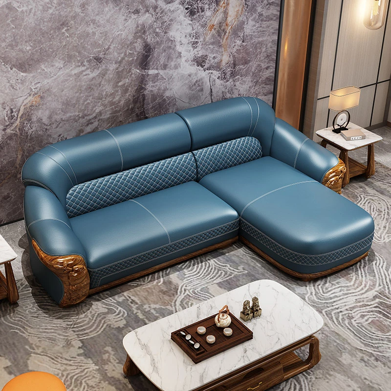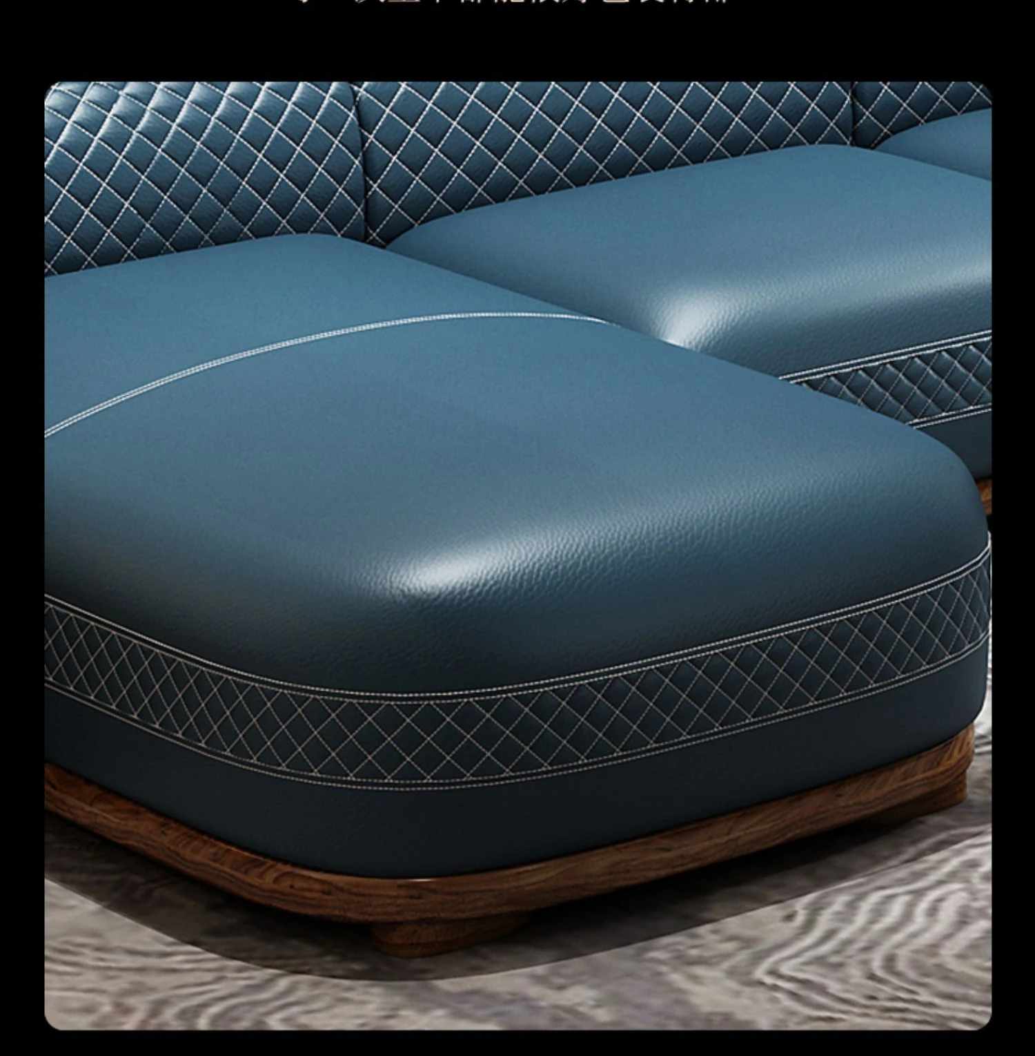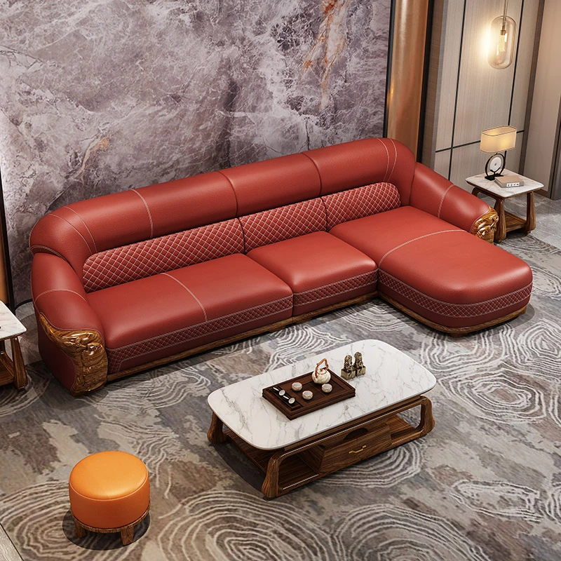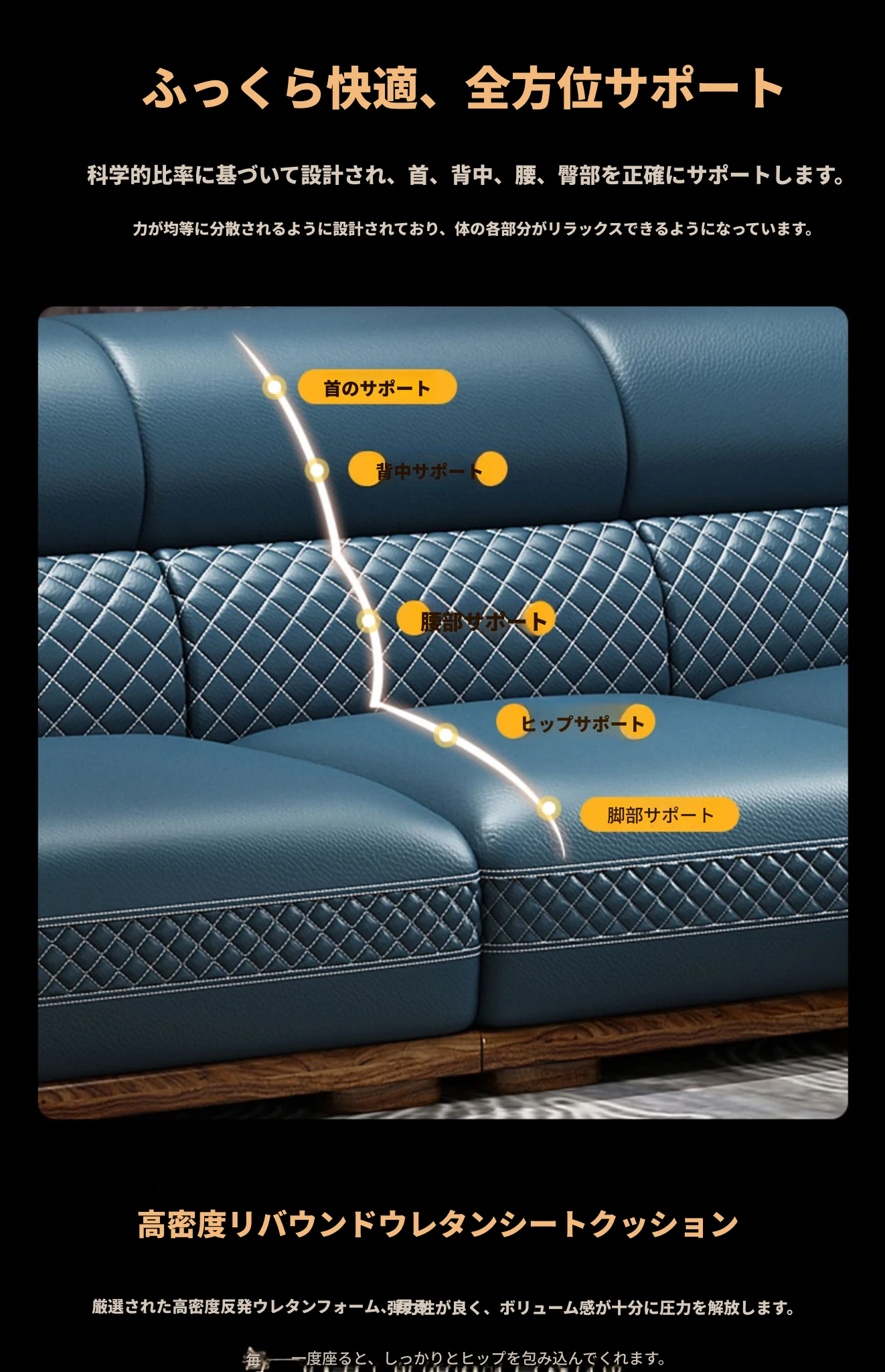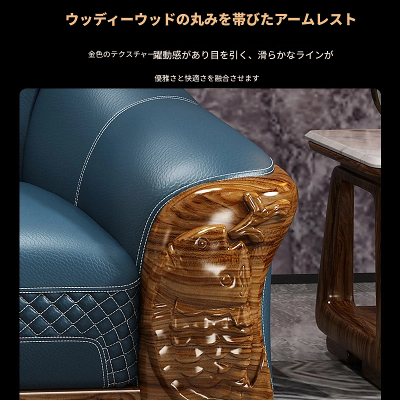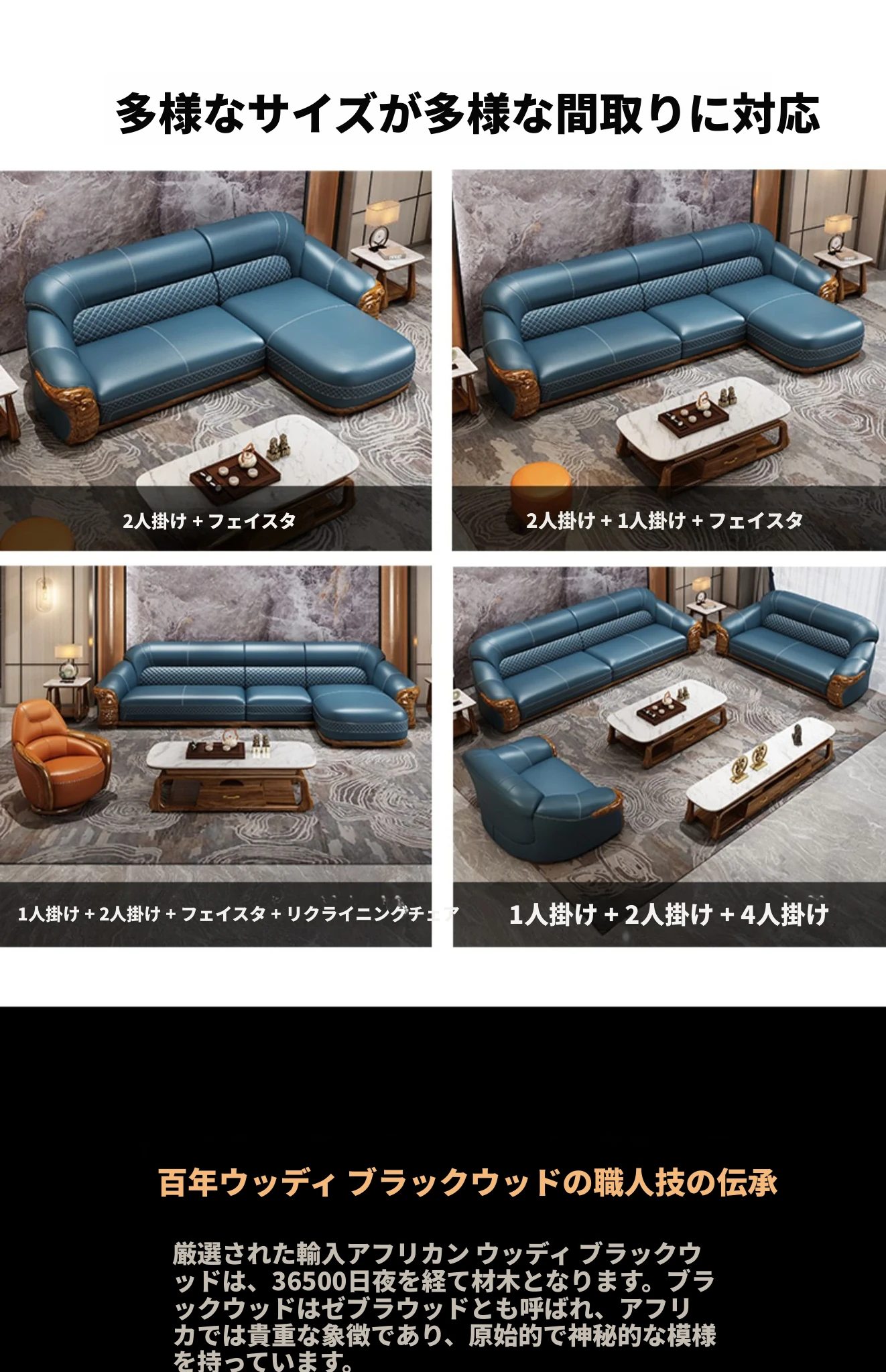 高級感溢れる欧風ウッド調本革ソファ!小型住居にも最適なL字型コンビネーション。上質な牛革と無垢材使用で、贅沢なリビング空間を演出します。