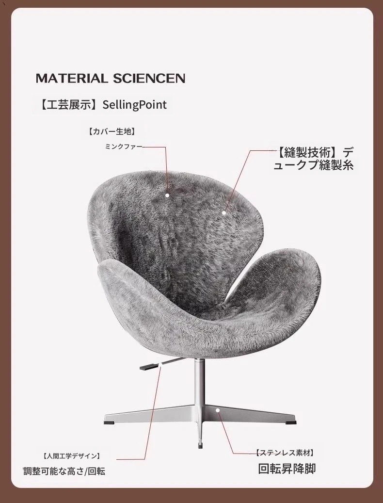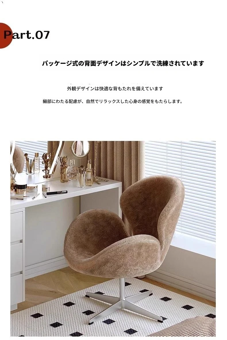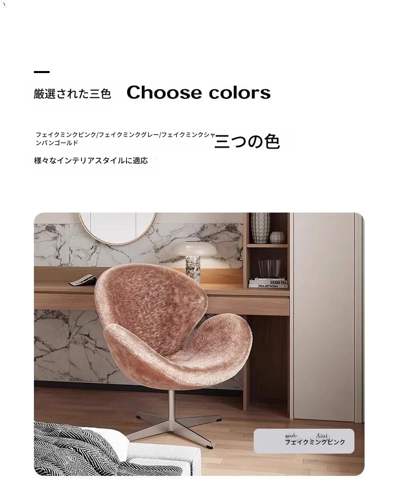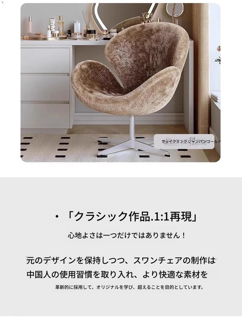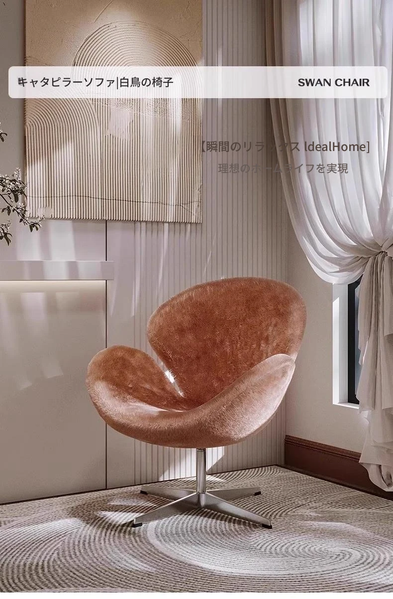 イタリアンシンプルデザインのソファチェア|女性のための寝室やドレッサーに最適|回転式スワンチェア|リビングやバルコニーでくつろぐための一品!