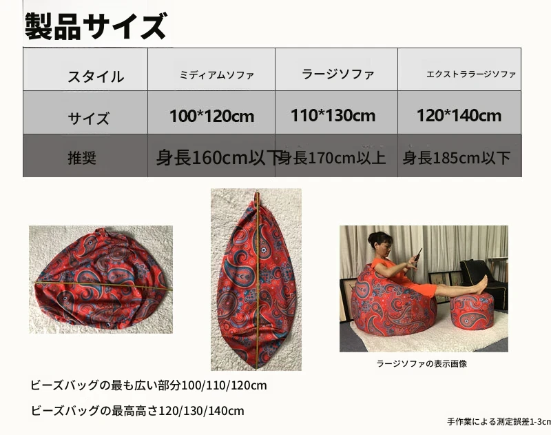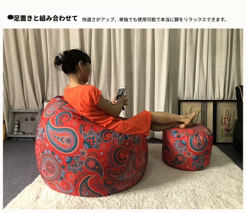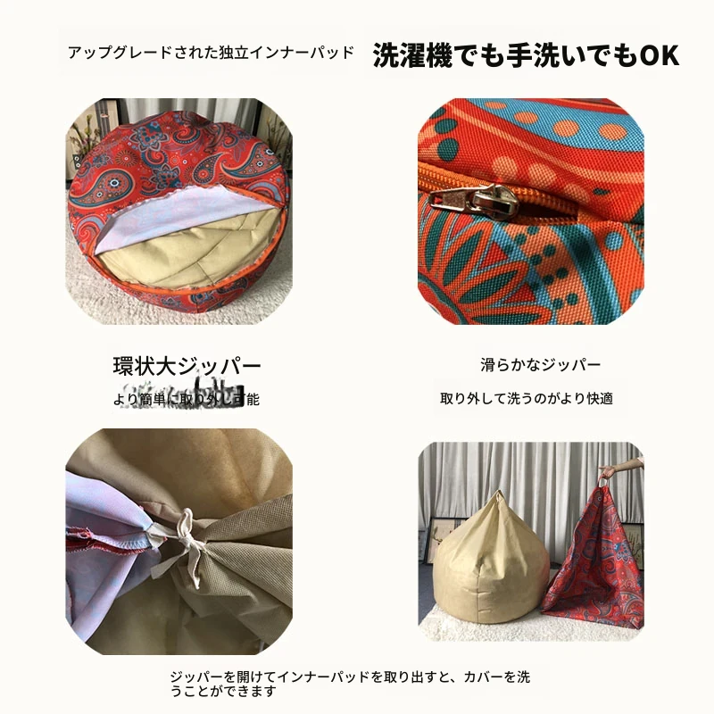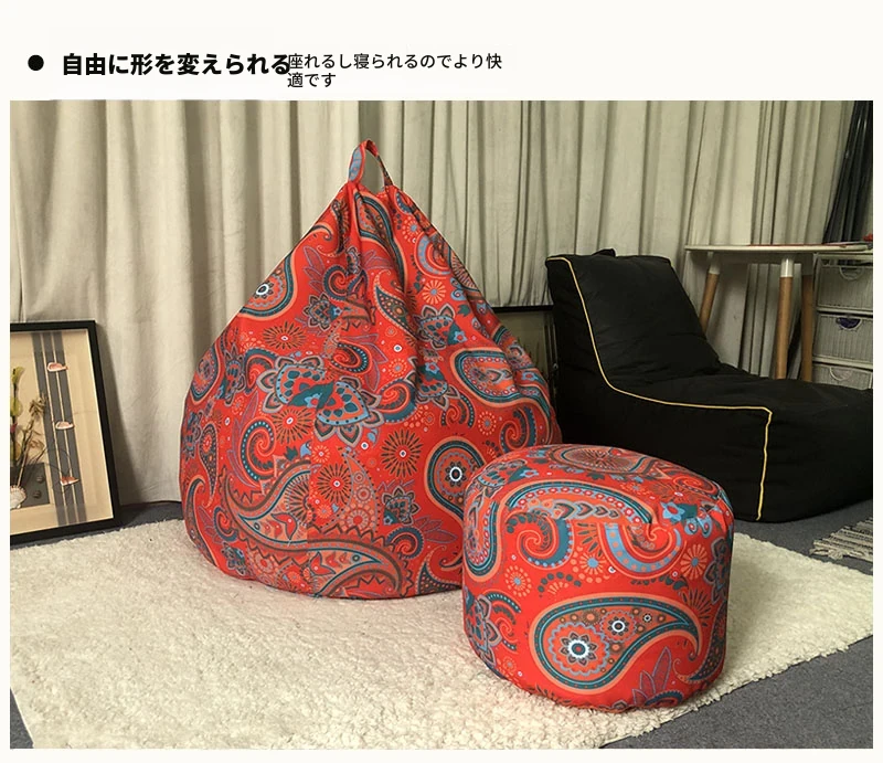 美しいプリントのインナー&アウターコート、粒なし水滴、取り外し可能な洗濯可能な豆袋、リラックスした北欧風の表情豊かなソファチェア。あなたの生活空間をスタイリッシュに彩ります!