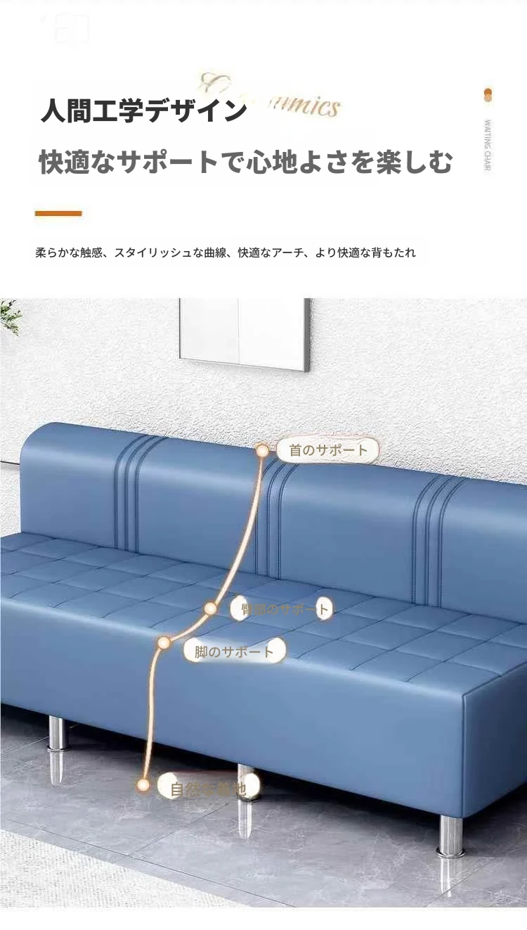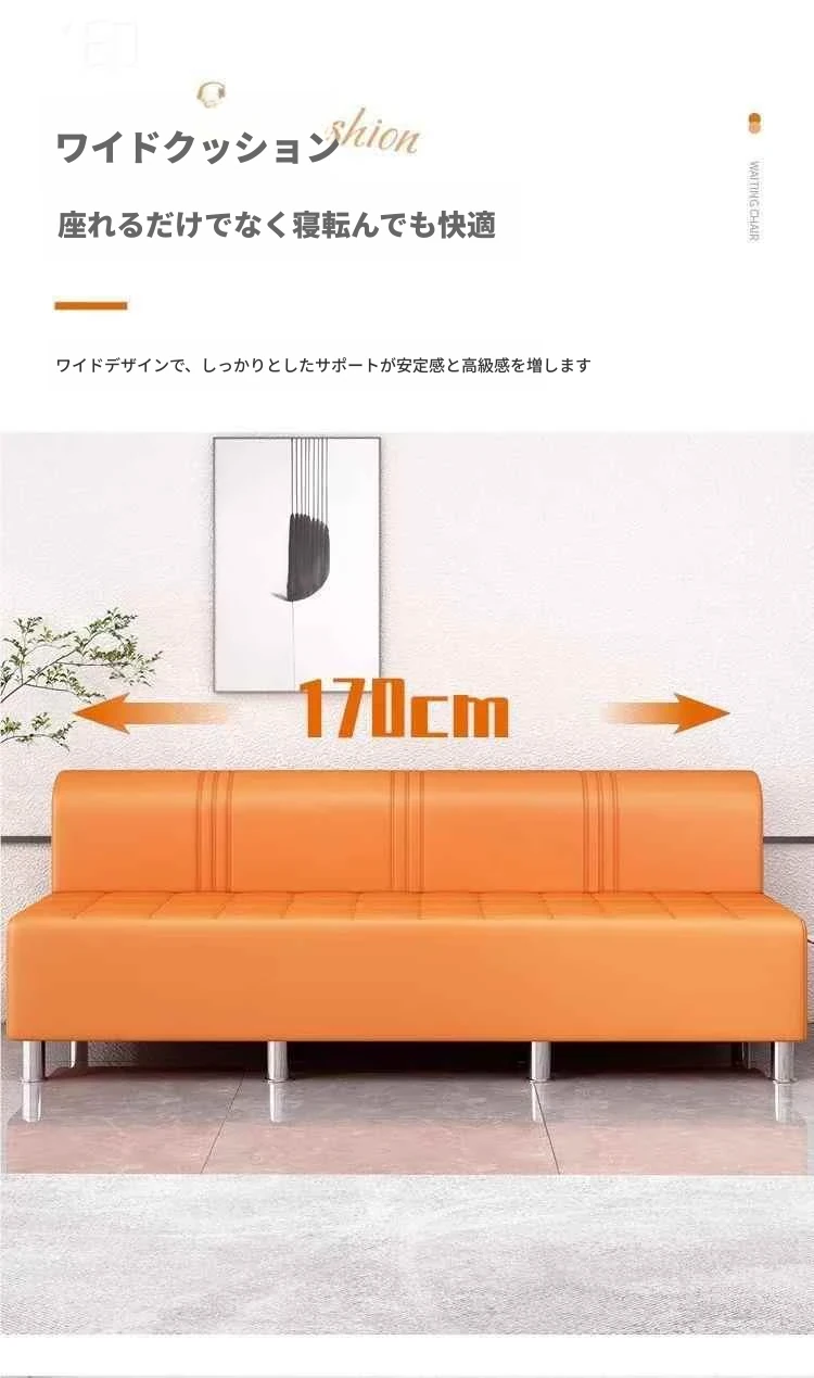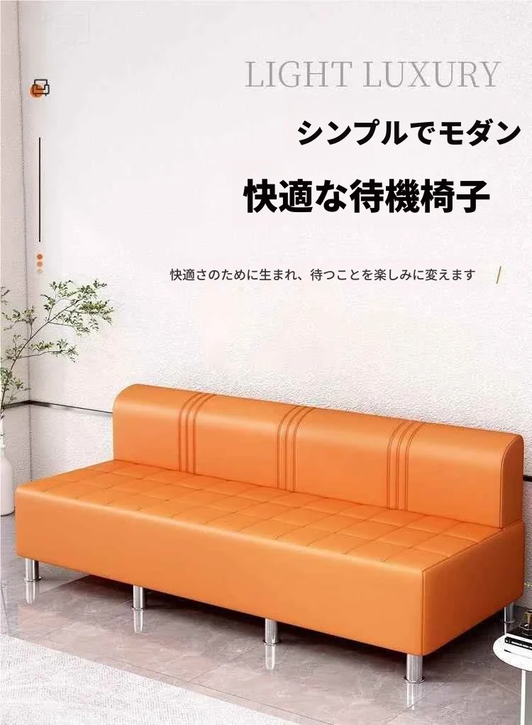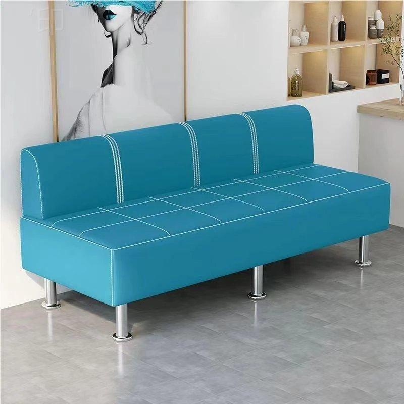美容室の休憩エリアに最適!おしゃれなソファと待機椅子 - 人気のヘアサロンでの快適な待ち時間を提供する専用ロングベンチ。お客様をリラックスさせるデザインで、見た目も抜群!