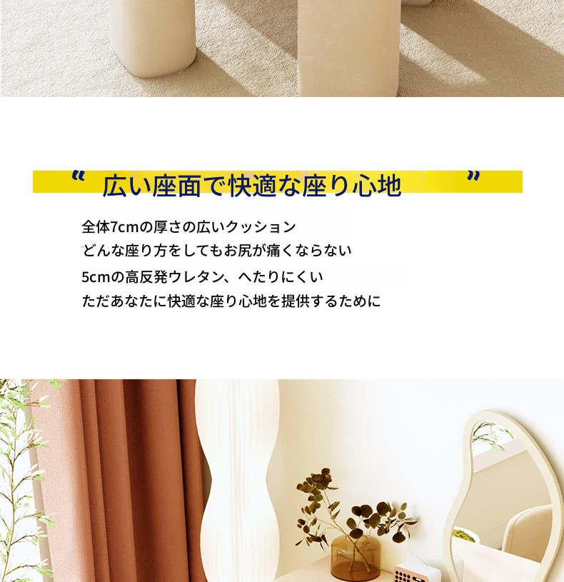 人気のメイクアップスツール!おしゃれな寝室用ドレッサーチェア、家庭用ラウンドスツール。軽やかなラグジュアリー感を楽しめるクリーム風の単体椅子で、毎日のビューティータイムを特別に演出します!