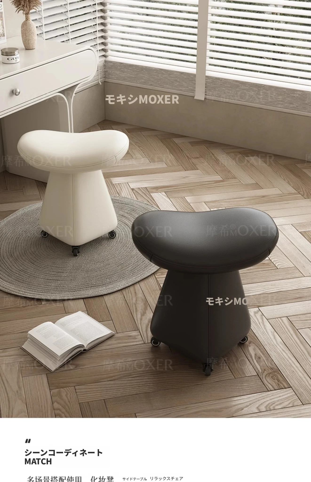 モヒ・ネット流行化粧スツール 回転式 移動可能 滑車付き 高美感 軽やかでラグジュアリーなデザイン 化粧台スツール・ロースツール・ティーテーブルスツール