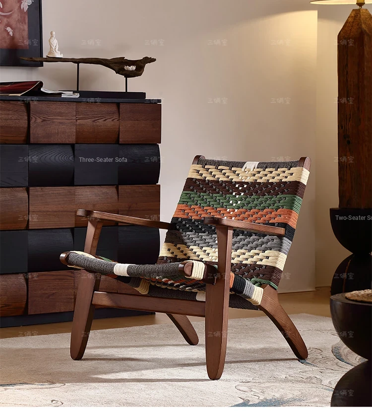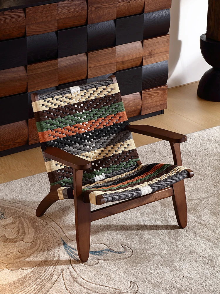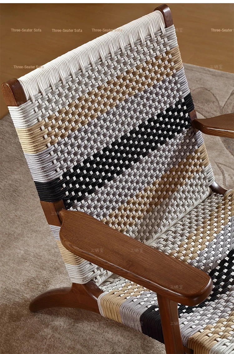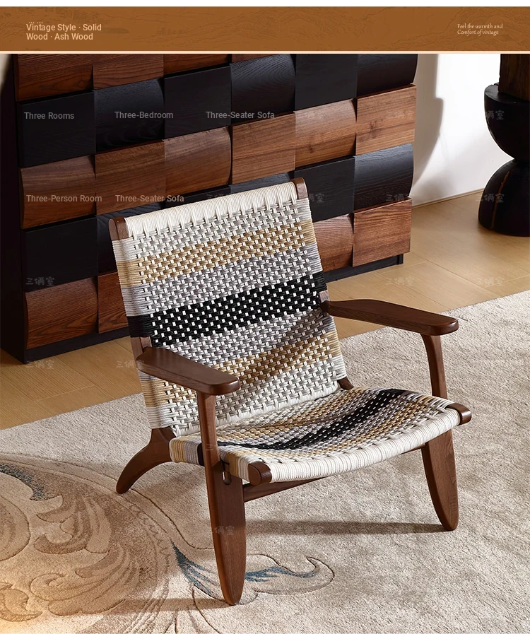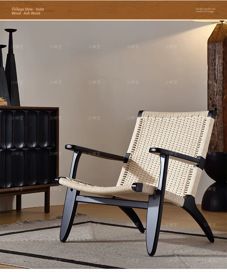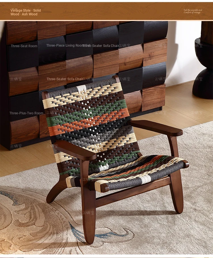 Vintage French Style Solid Ash Wood Single Sofa Chair - Retro Modern Lounge Chair for Living Room and Balcony, Perfect for Relaxation