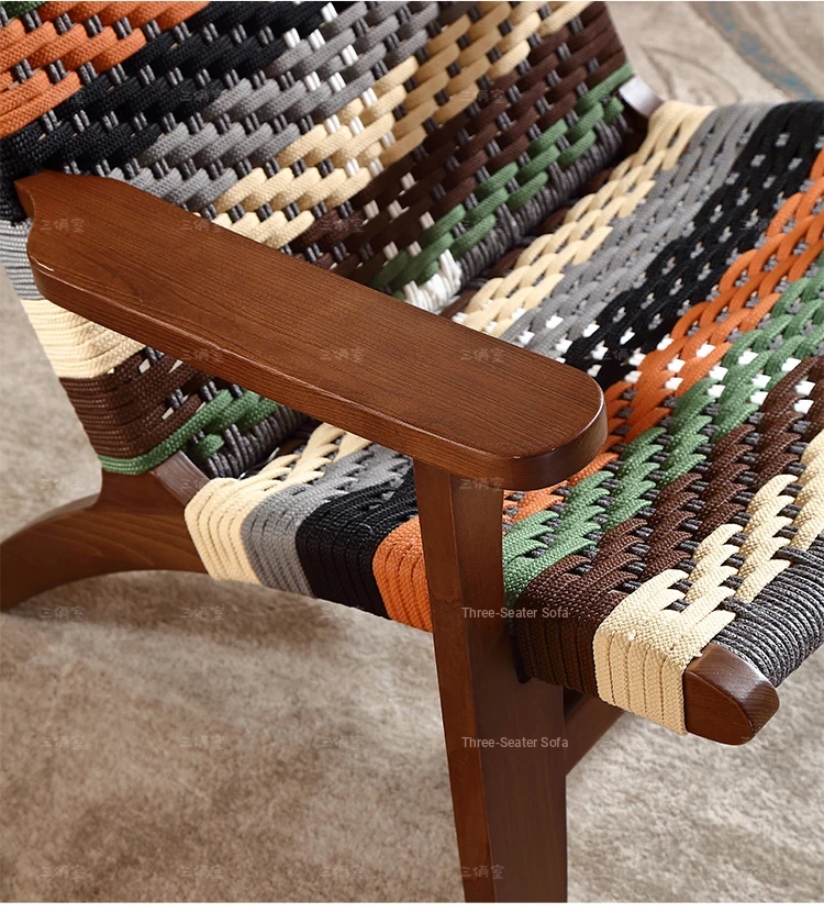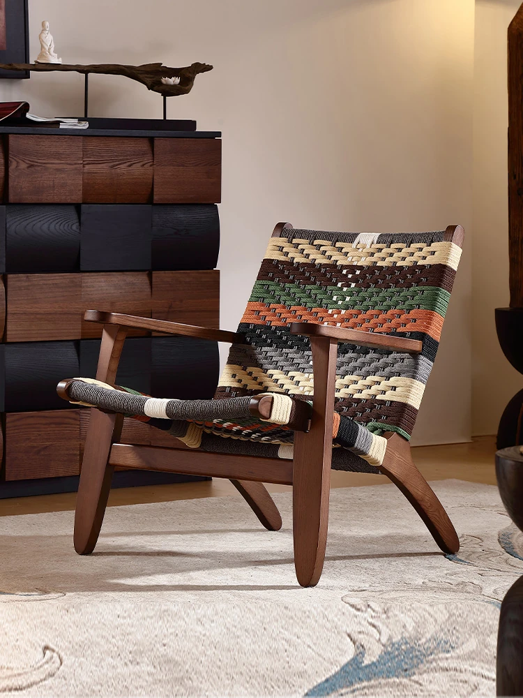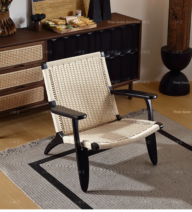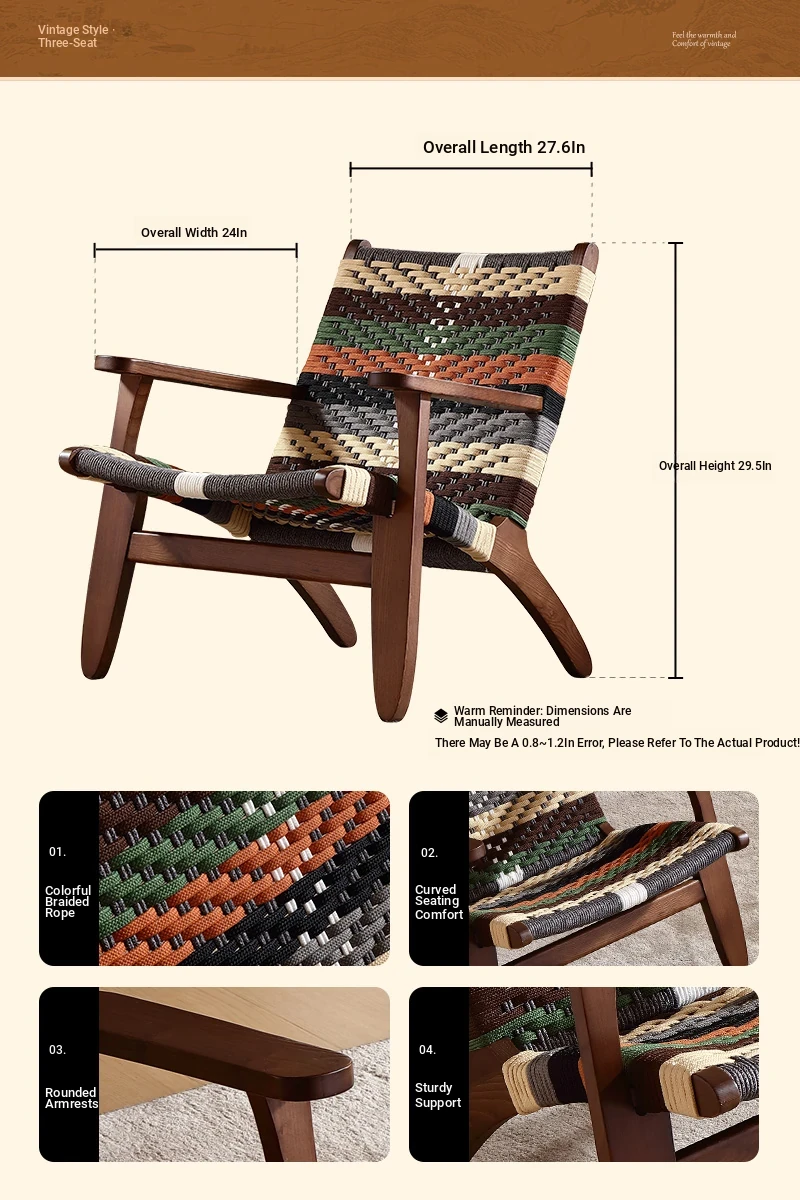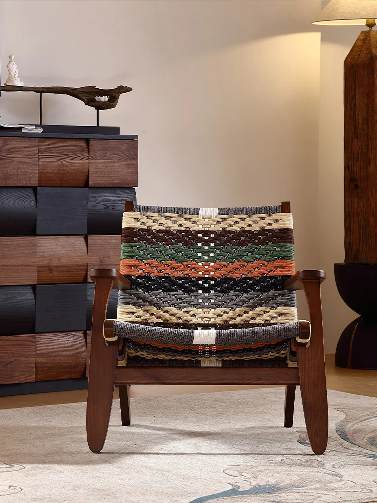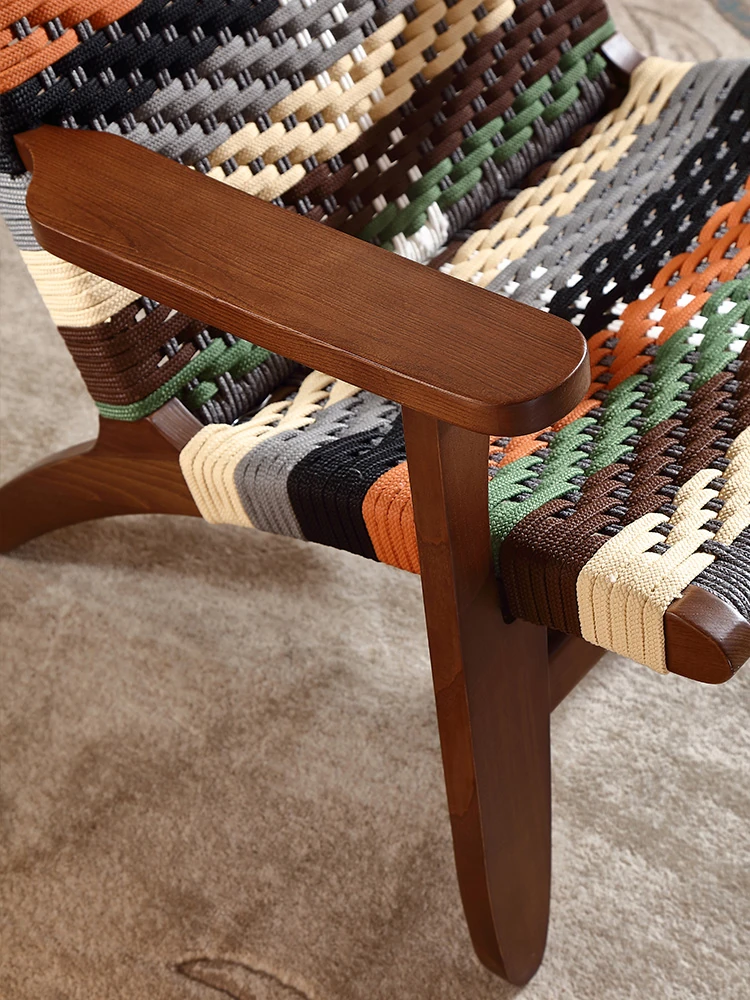 Vintage French Style Solid Ash Wood Single Sofa Chair - Retro Modern Lounge Chair for Living Room and Balcony, Perfect for Relaxation