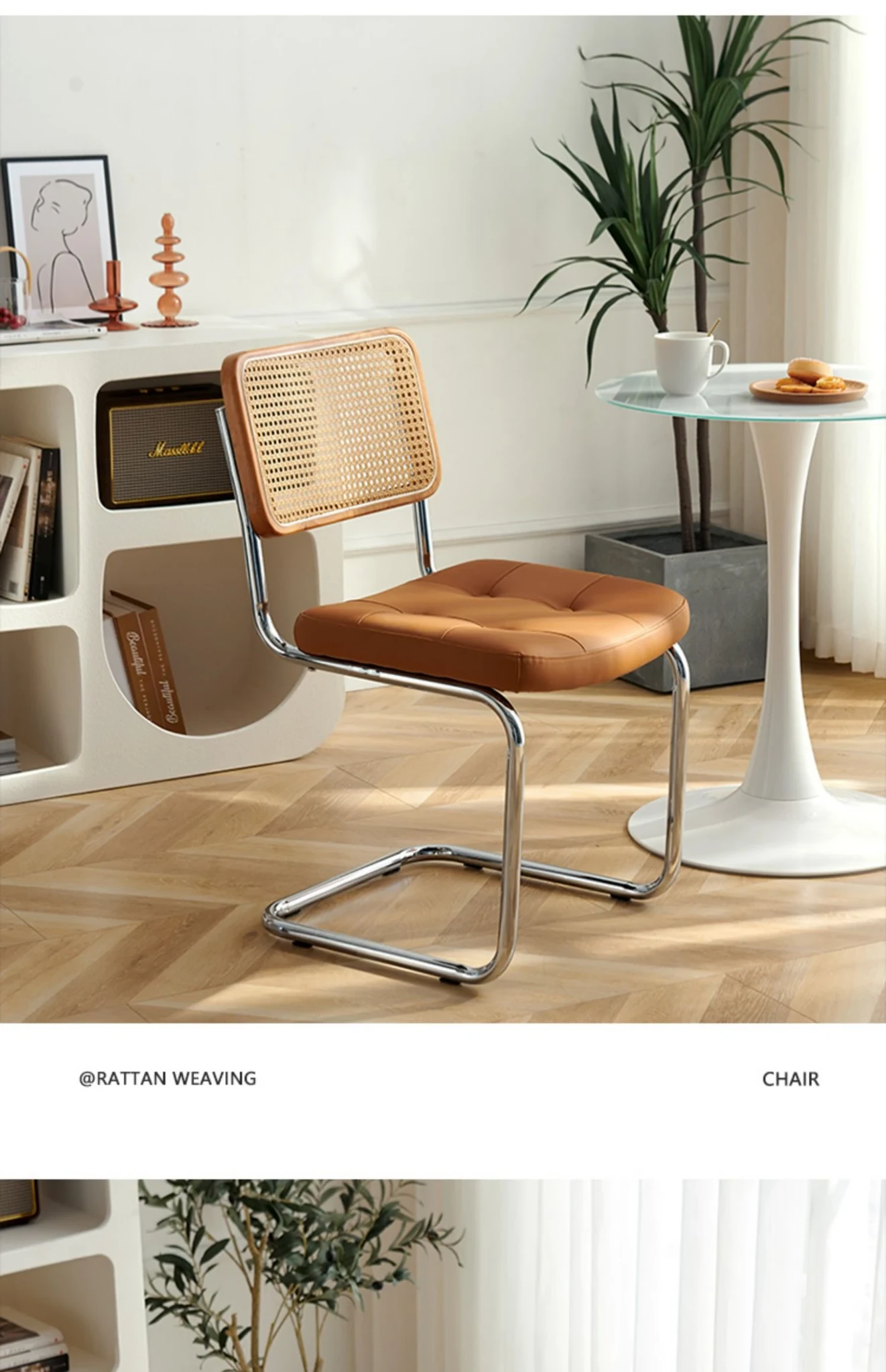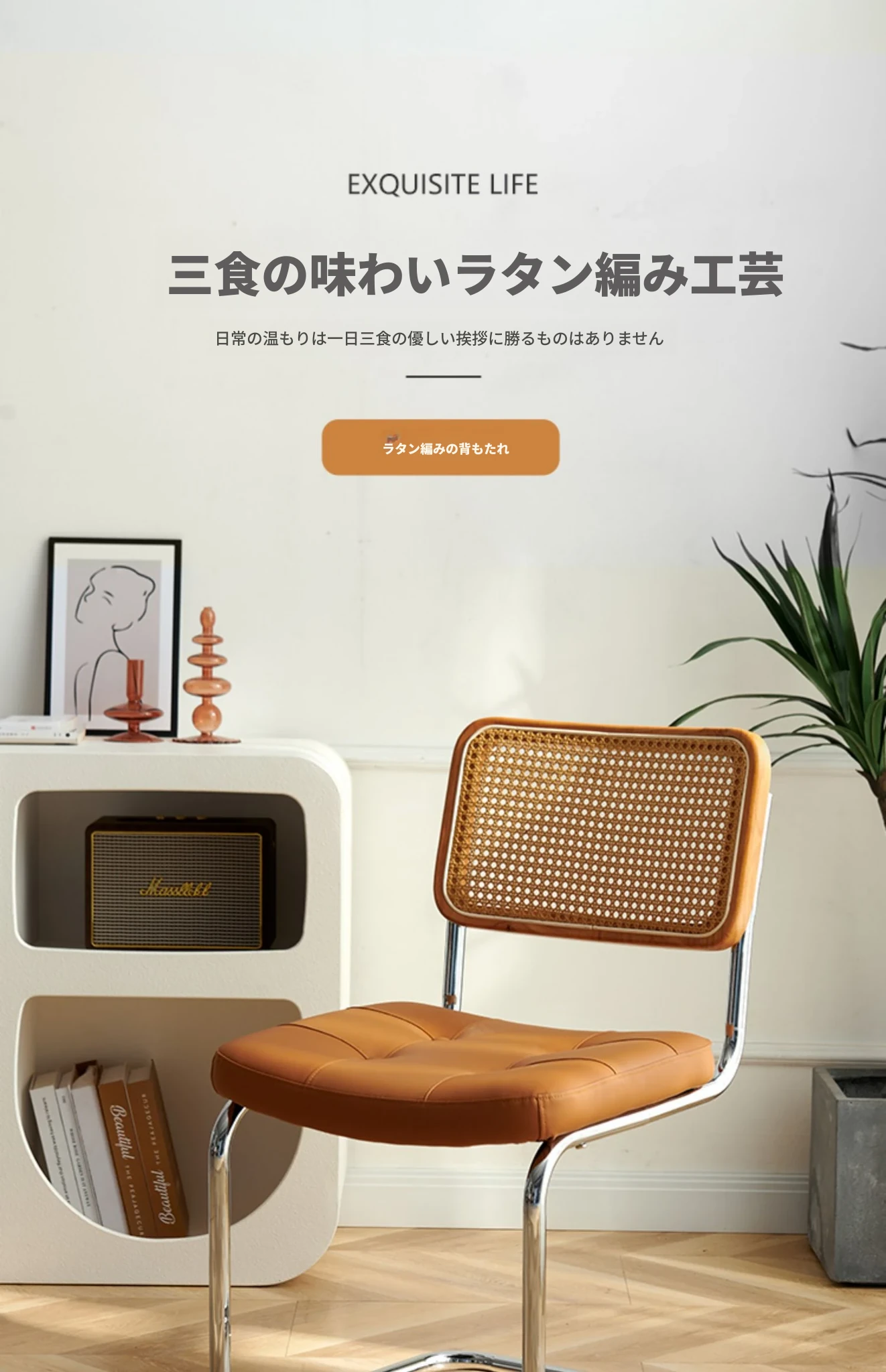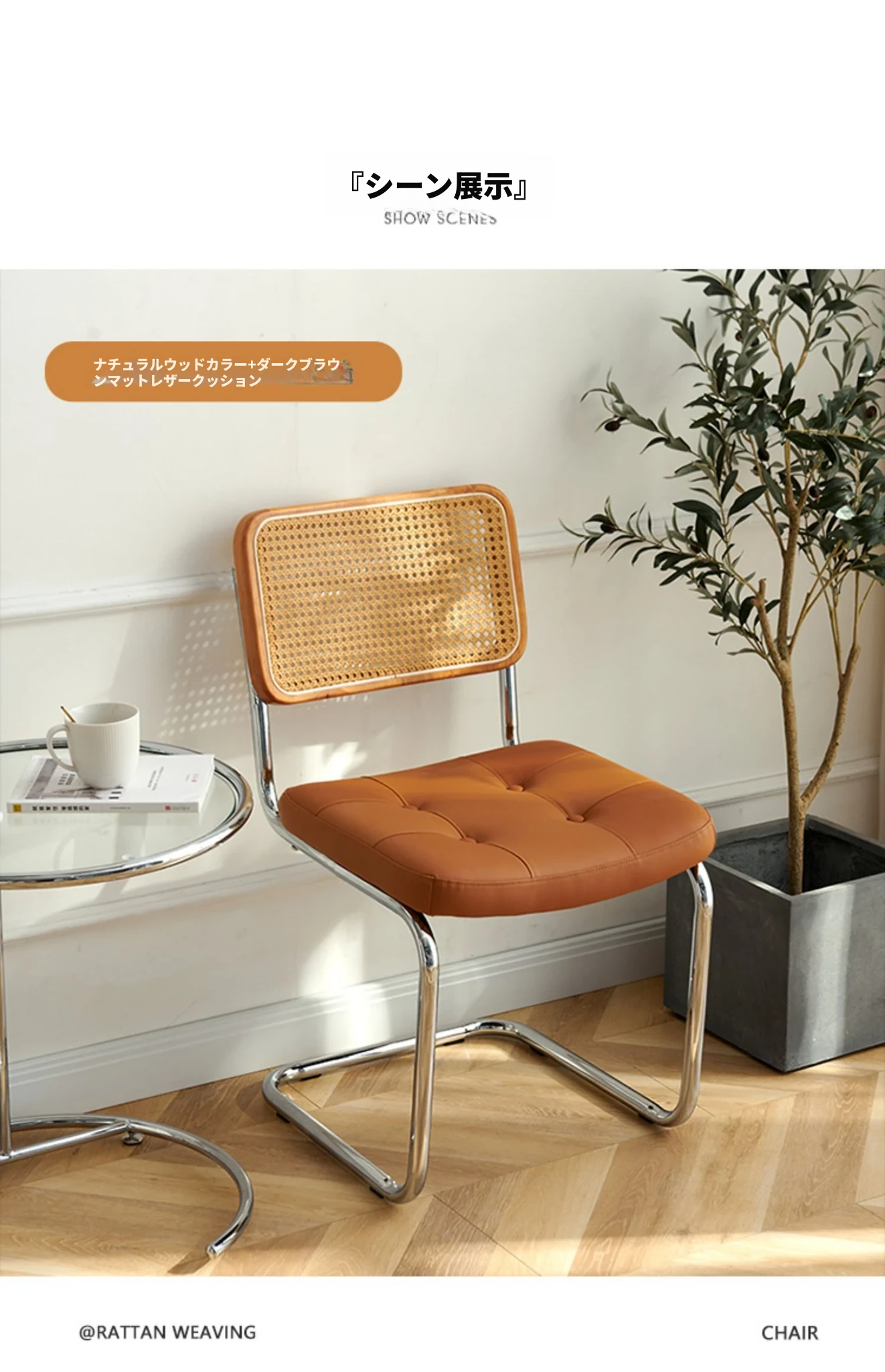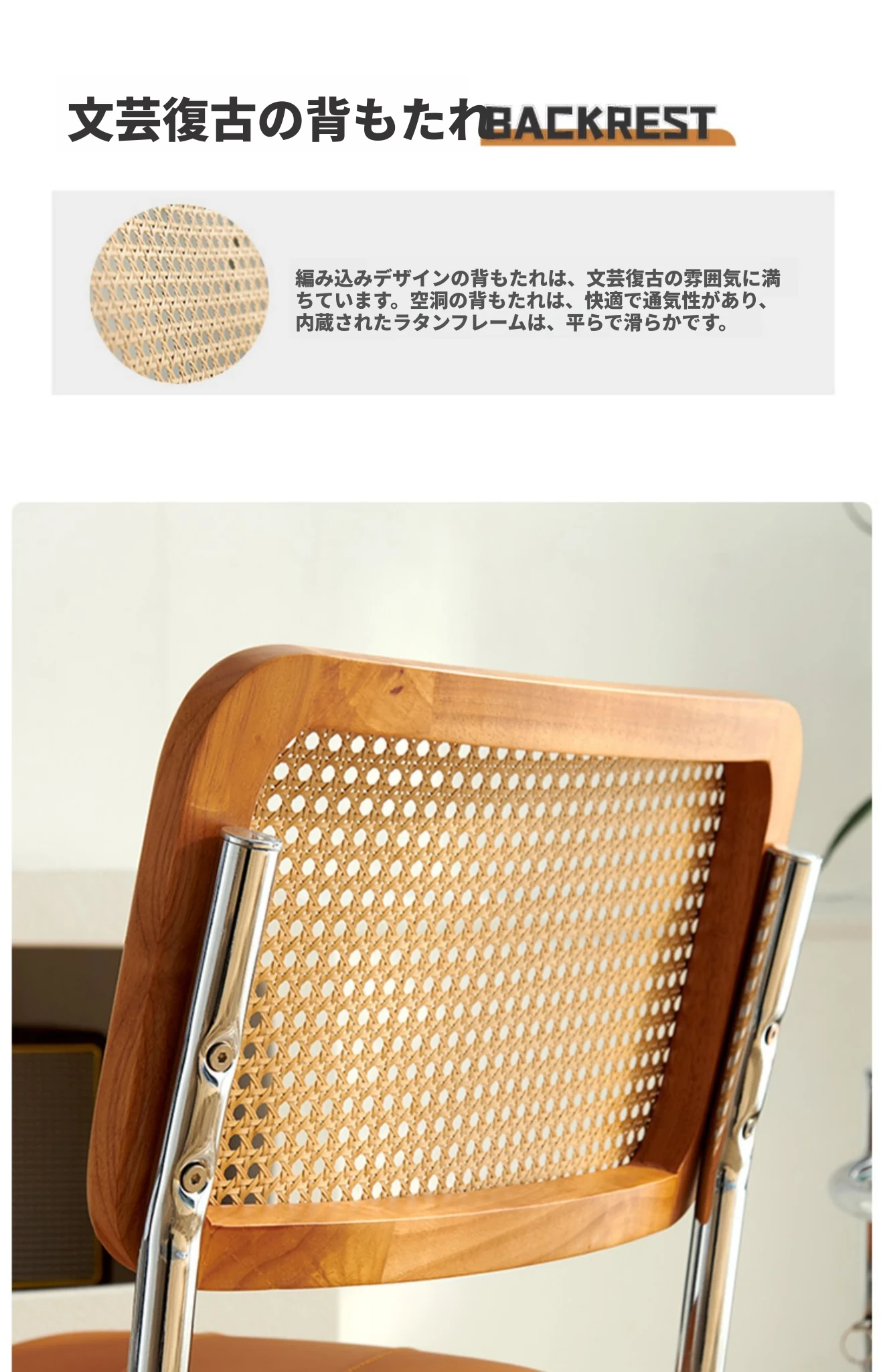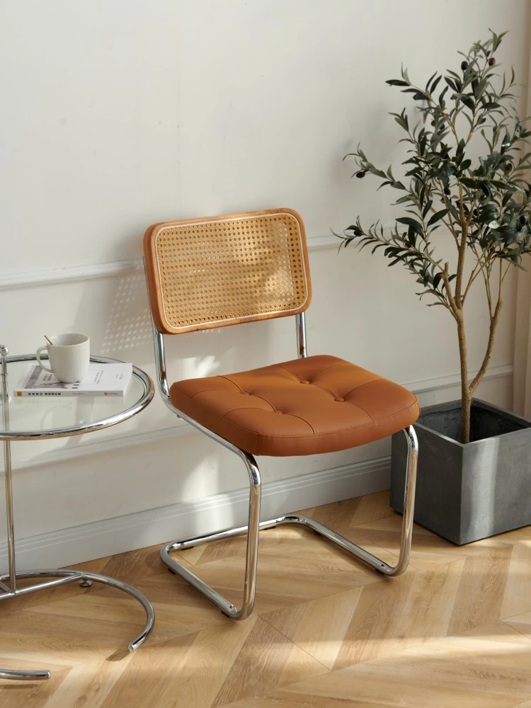 中古のラタン編み椅子 背もたれ付き 家庭用デザイナーダイニングチェア 実木製 中古カフェ用 お洒落な休憩スペースにぴったりなインスピレーションチェア!