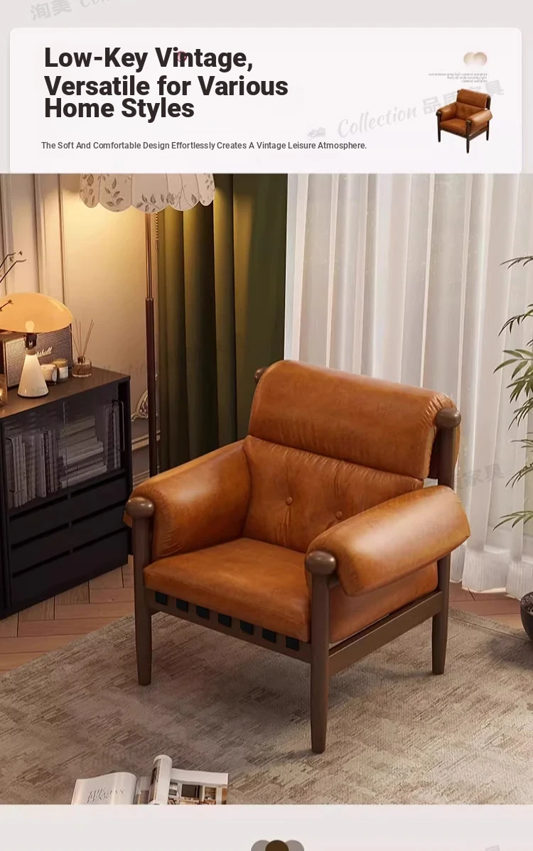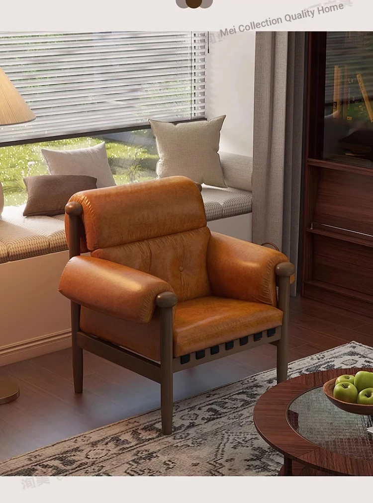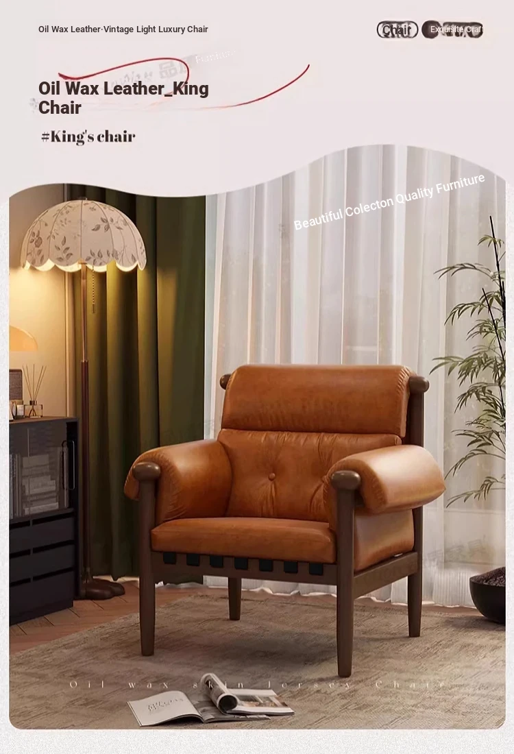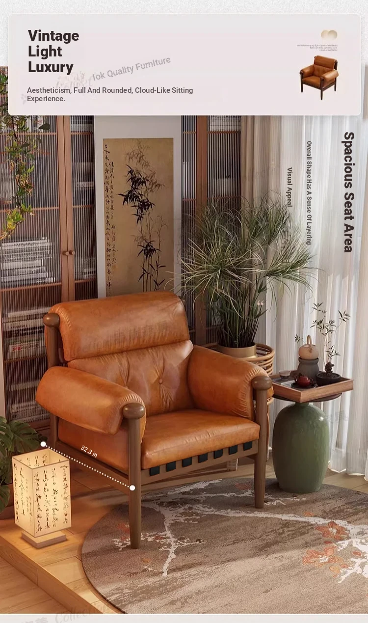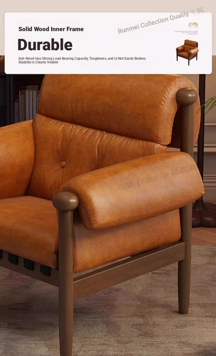 Vintage White Ash Wood King Sofa Chair - Stylish Single Leisure Chair for Living Room & Balcony, Perfect for Relaxation and Design Enthusiasts