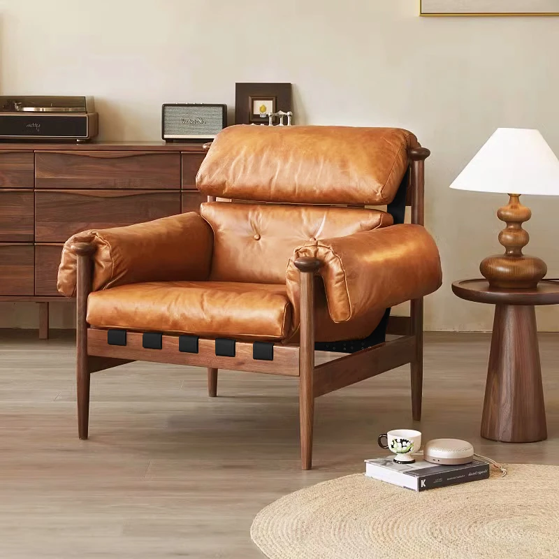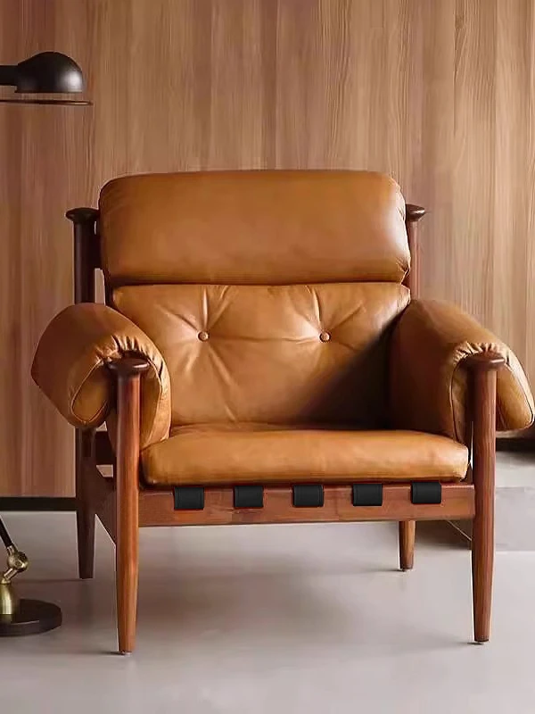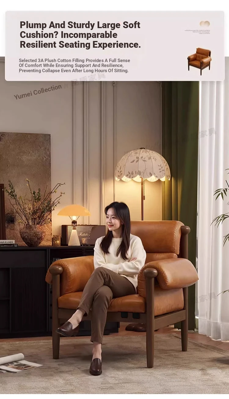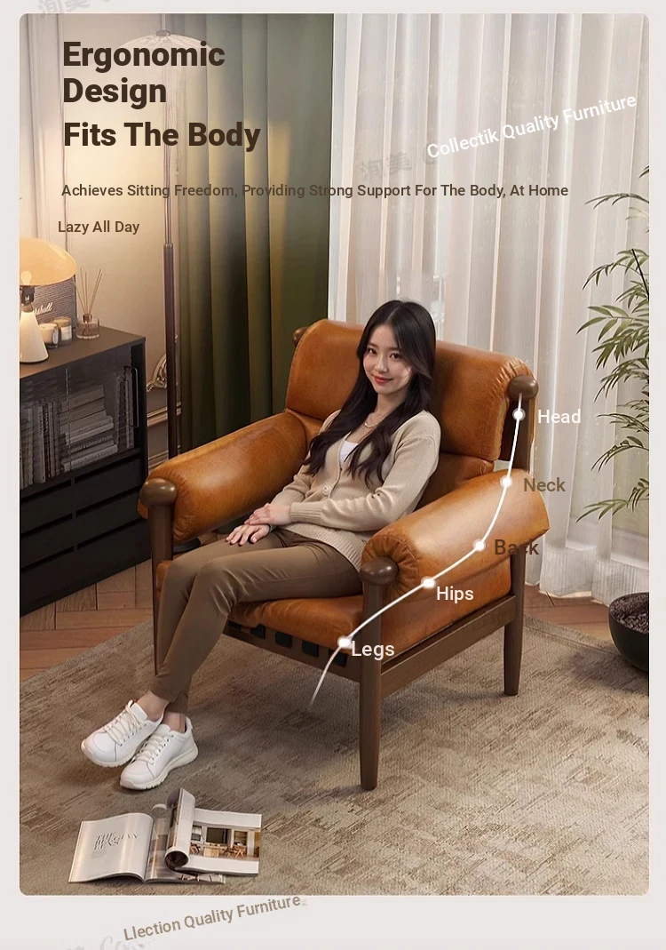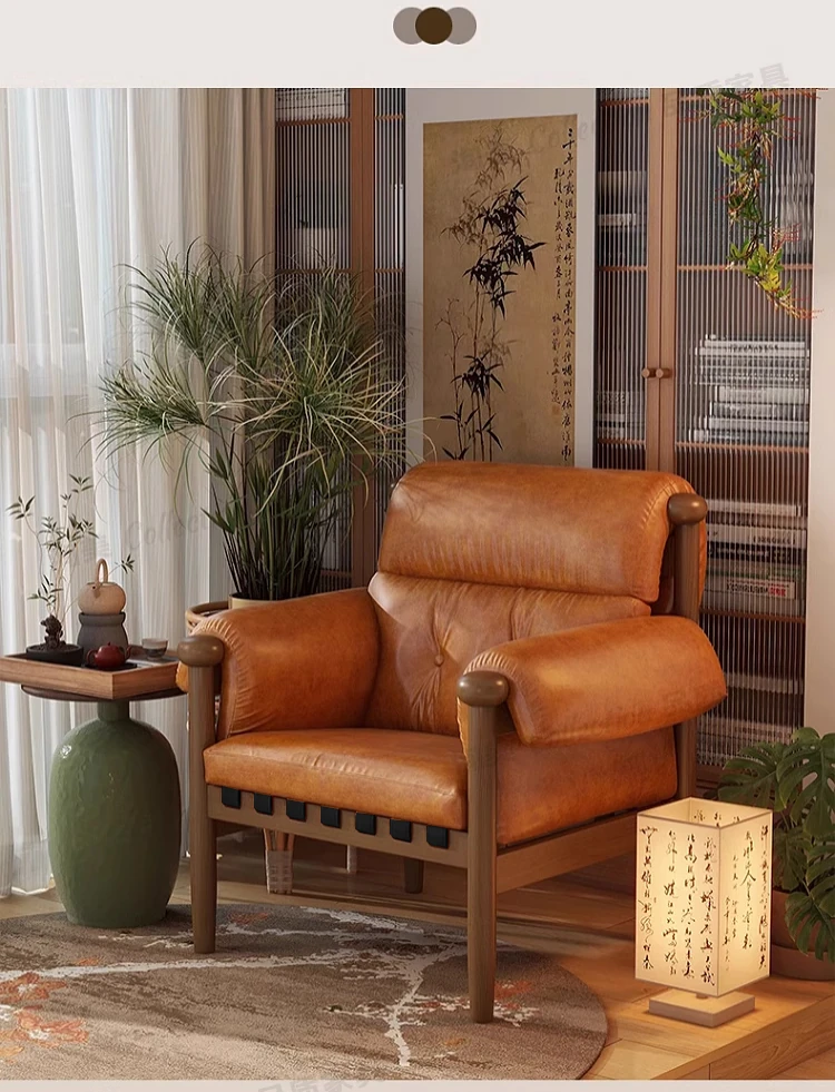 Vintage White Ash Wood King Sofa Chair - Stylish Single Leisure Chair for Living Room & Balcony, Perfect for Relaxation and Design Enthusiasts