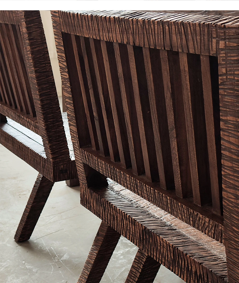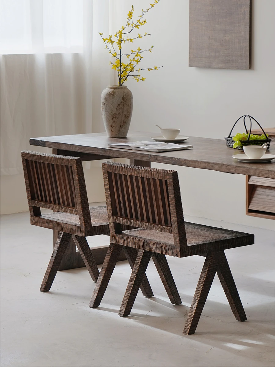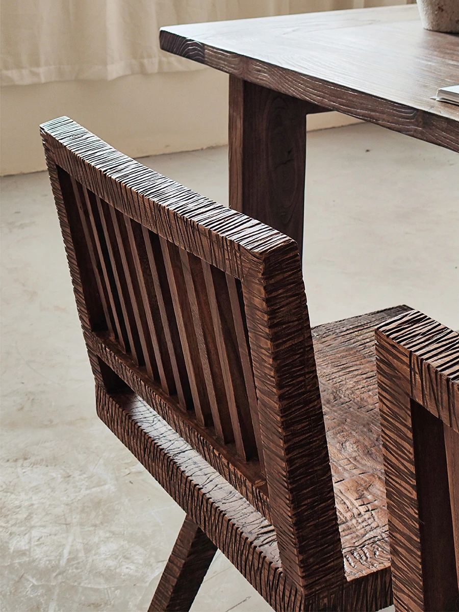 侘寂スタイルの無垢材デザインチェア – 民宿やカフェにぴったり!心安らぐ庭やリラックススペースに最適な、洗練された背もたれ付きのレジャーチェア。あなたの空間を美しく彩ります。