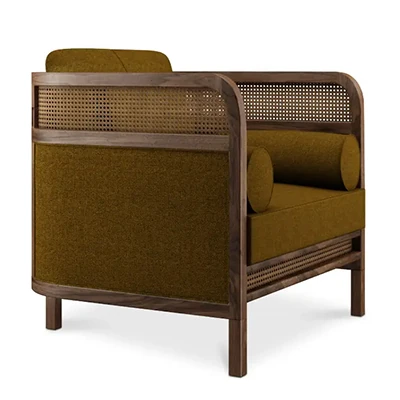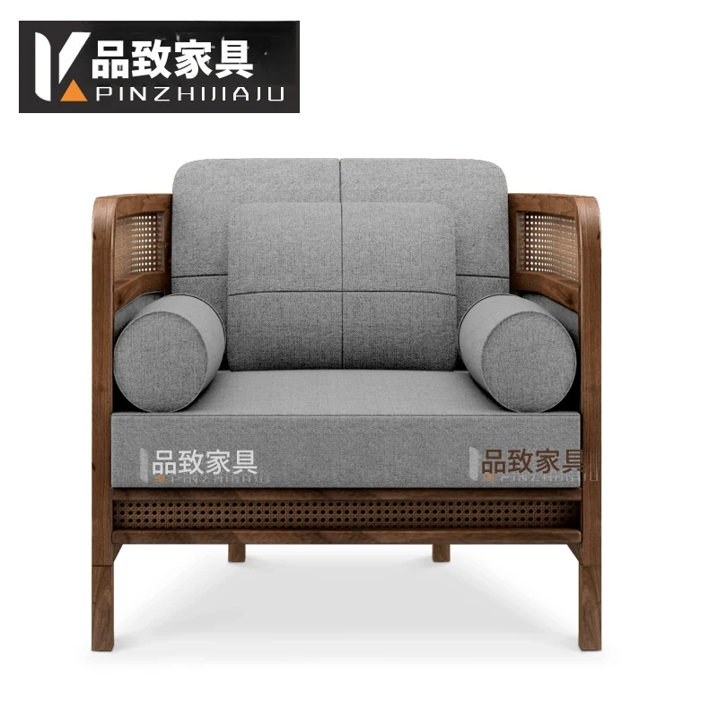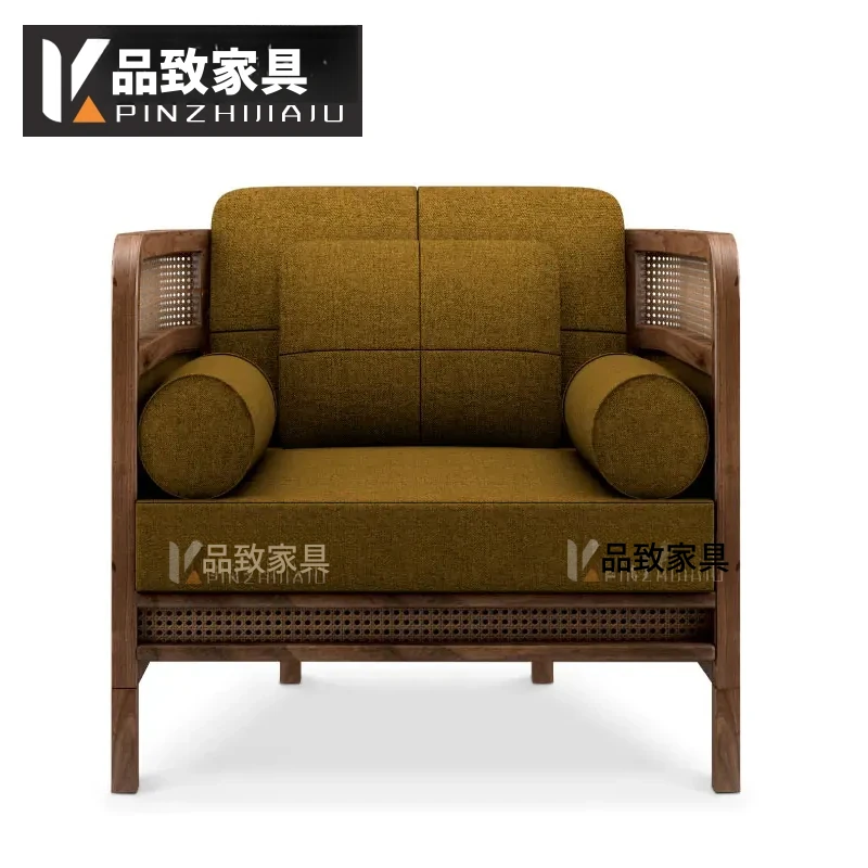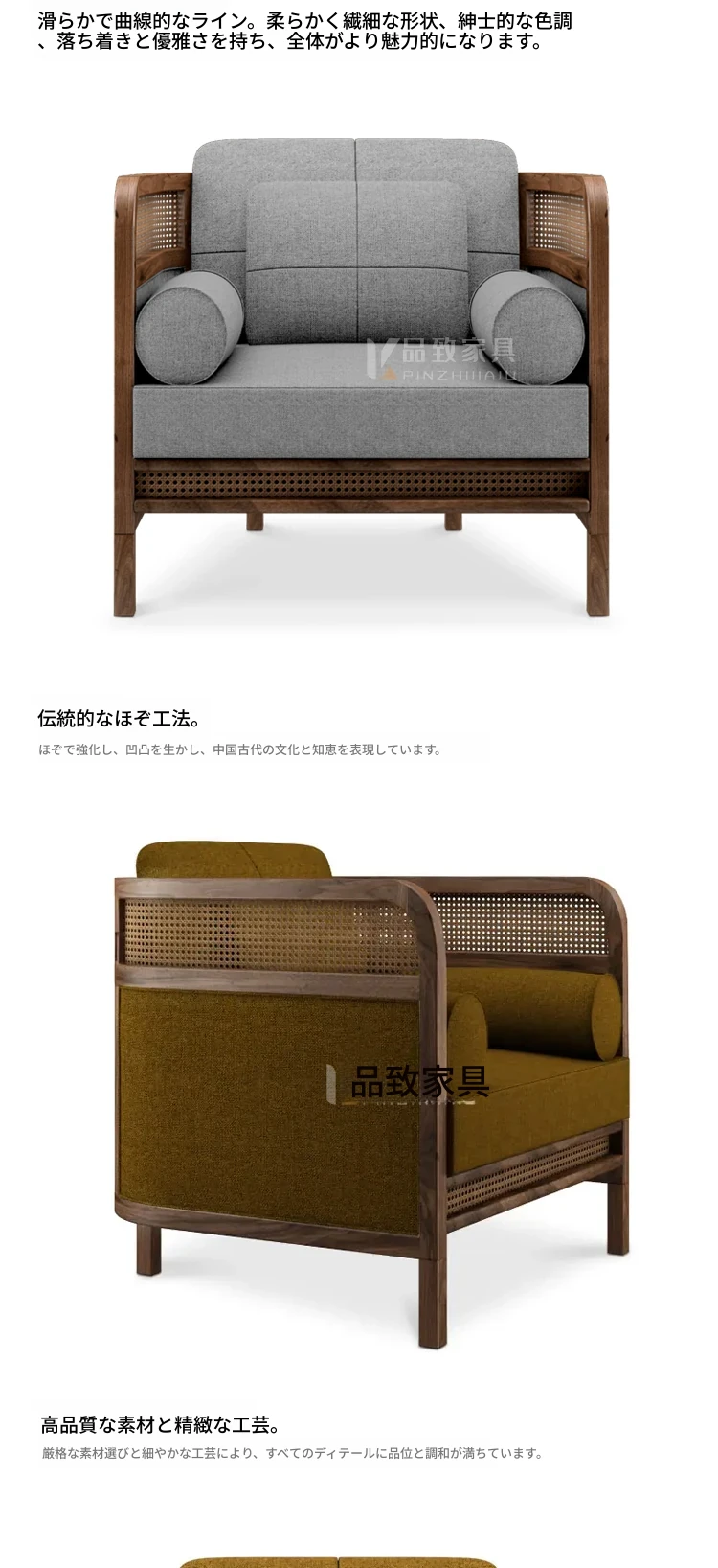 侘寂風スタイルの民宿ロビー用実木ソファ - ホテルや会所の接待に最適!売り場や休憩エリアにぴったりな一人掛けソファ椅子。心地よい空間を演出し、リラックスしたひとときを提供します。