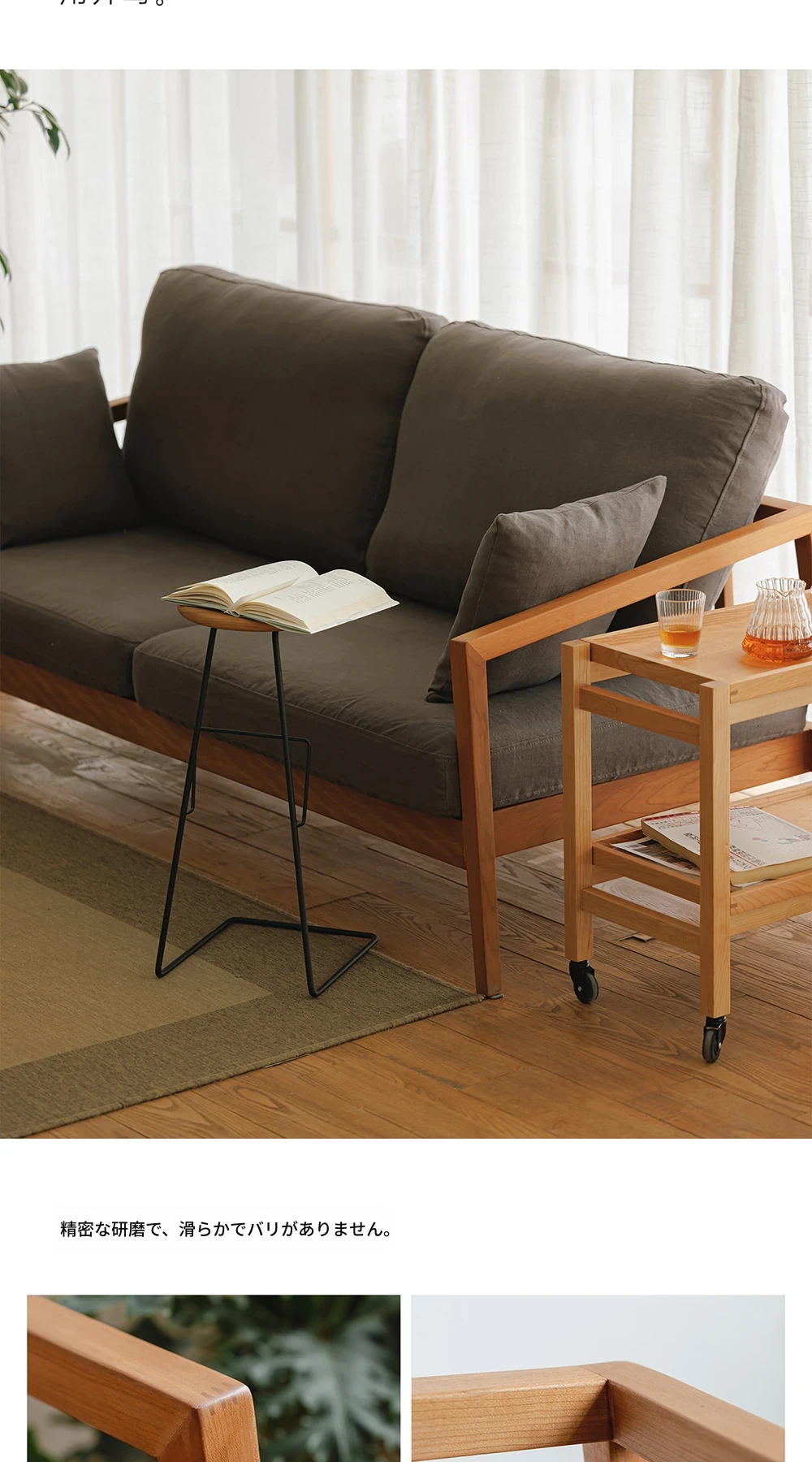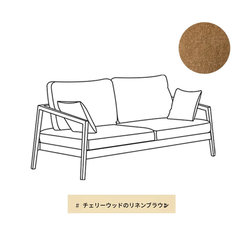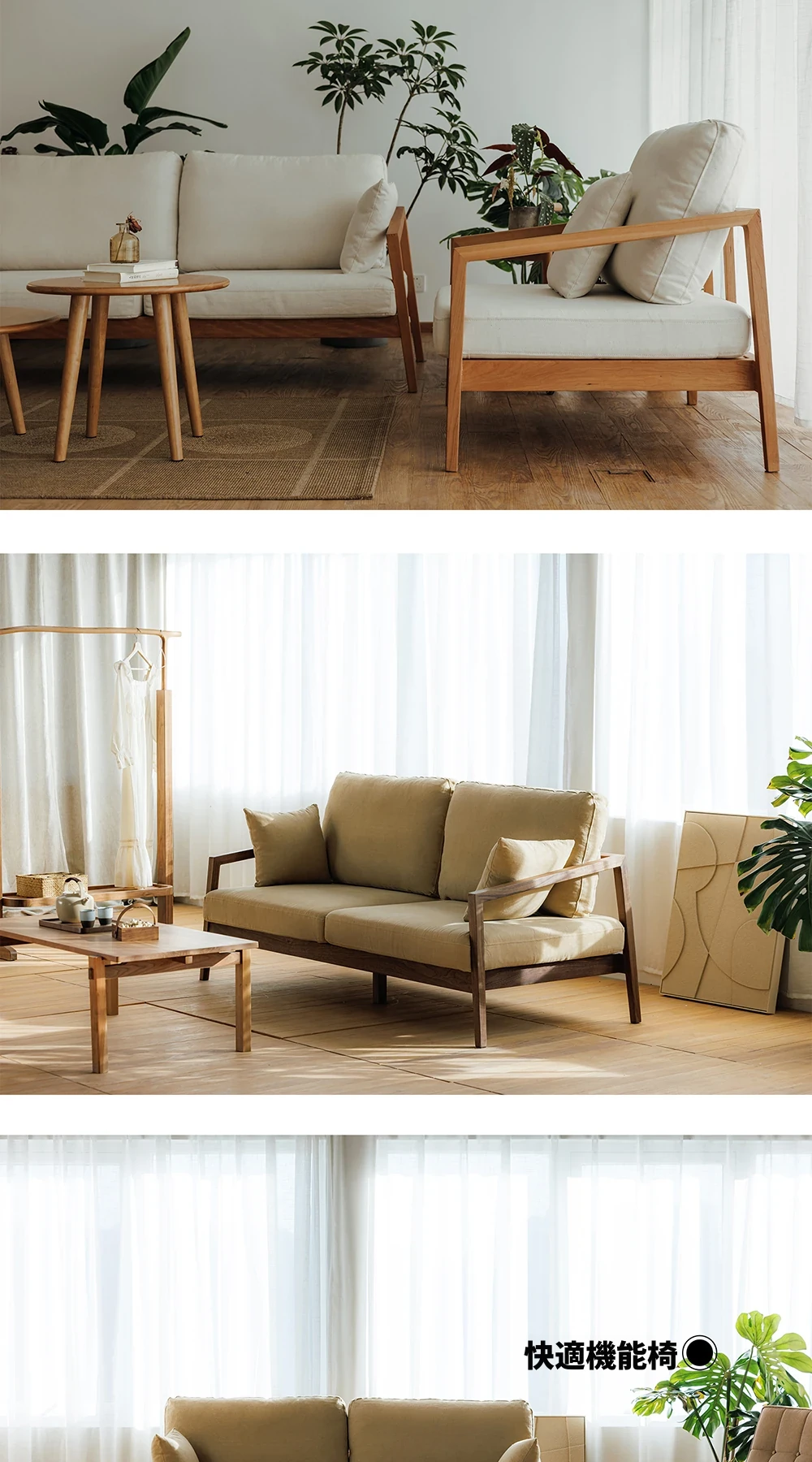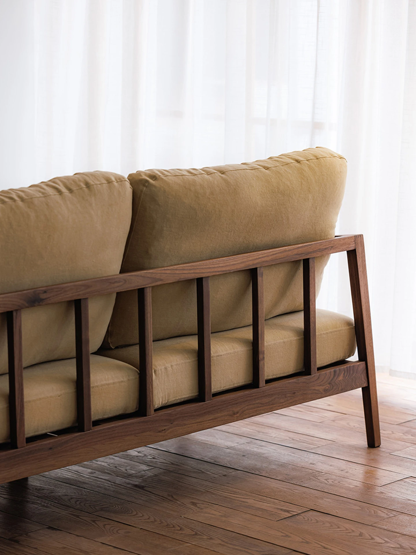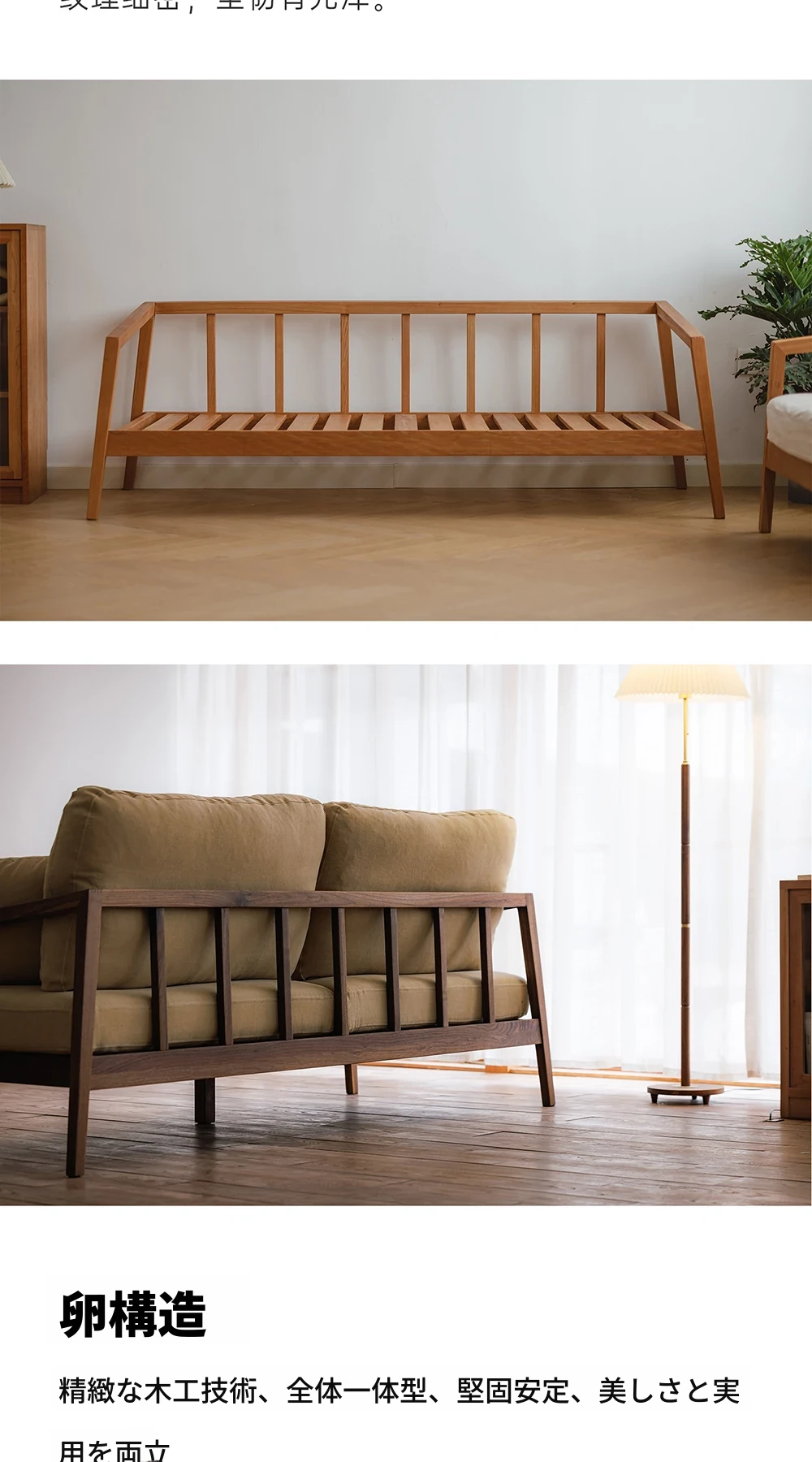 山のような心地よさ、全実木の和風ソファ - チェリーウッドとブラックウォールナットを使用したリビング用布製ソファ、コットンリネンで贅沢なひとときを。