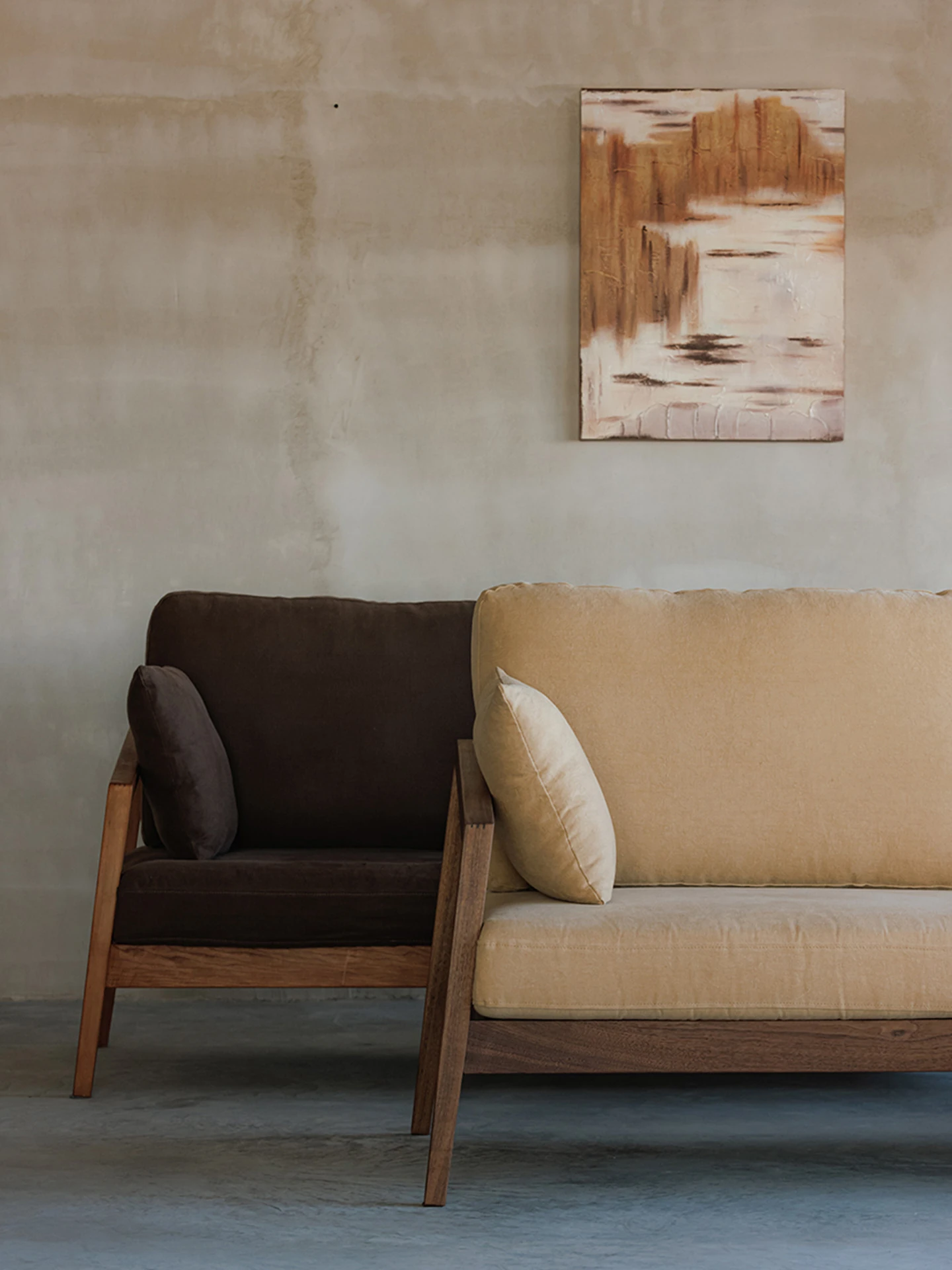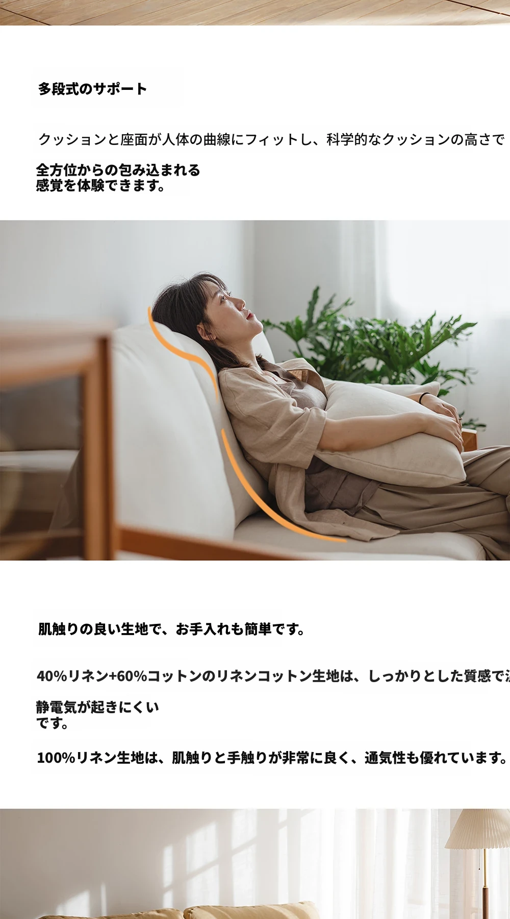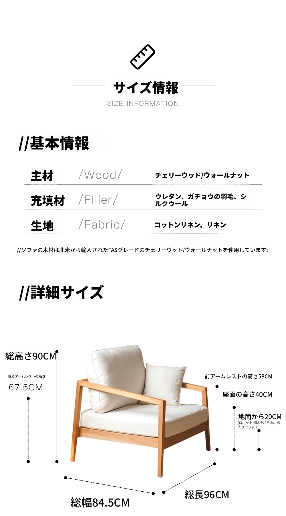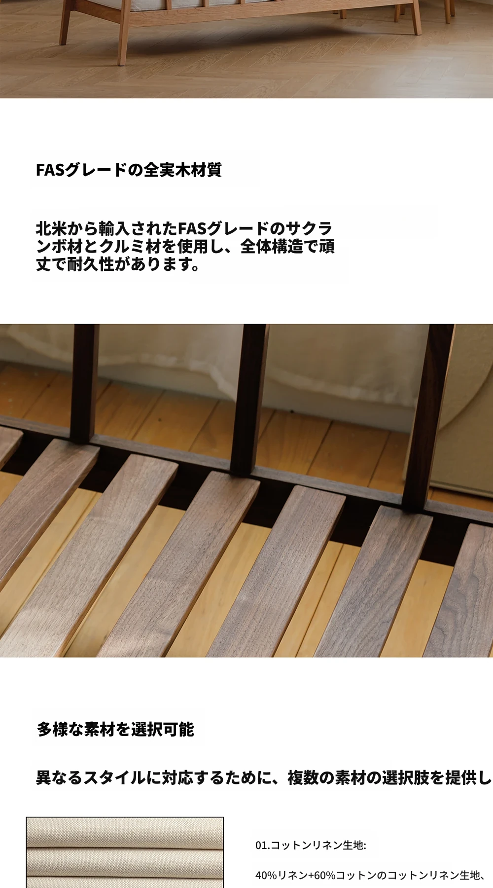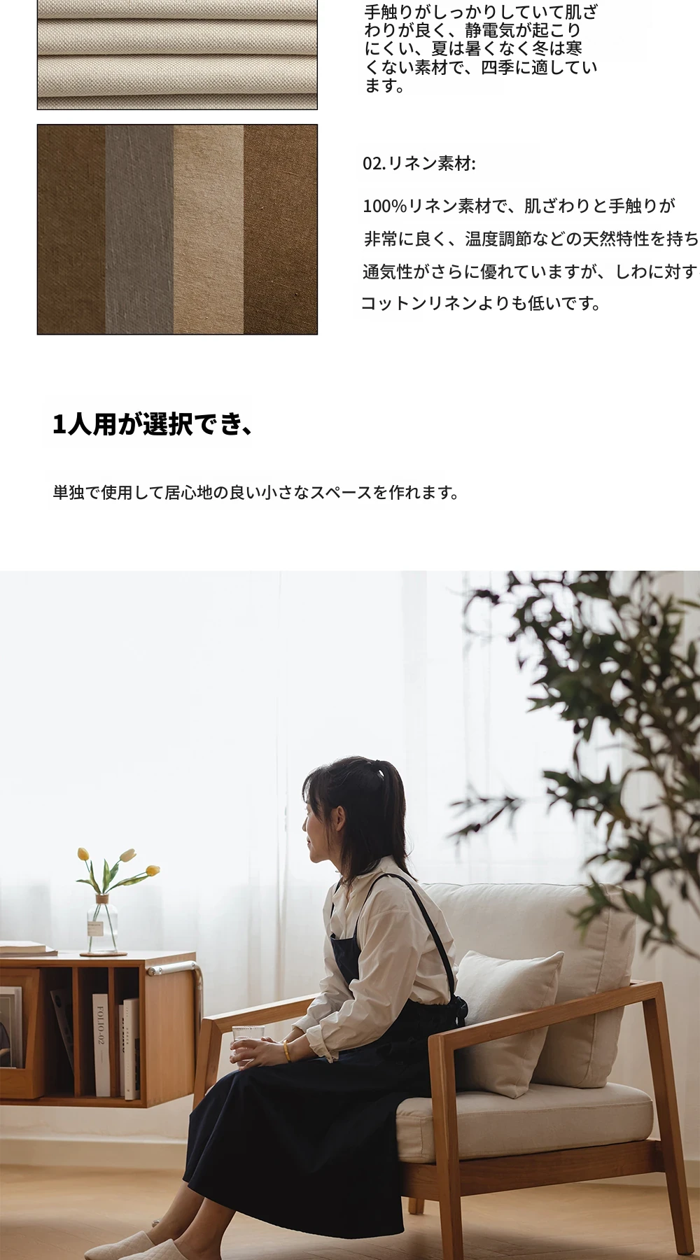 山のような心地よさ、全実木の和風ソファ - チェリーウッドとブラックウォールナットを使用したリビング用布製ソファ、コットンリネンで贅沢なひとときを。