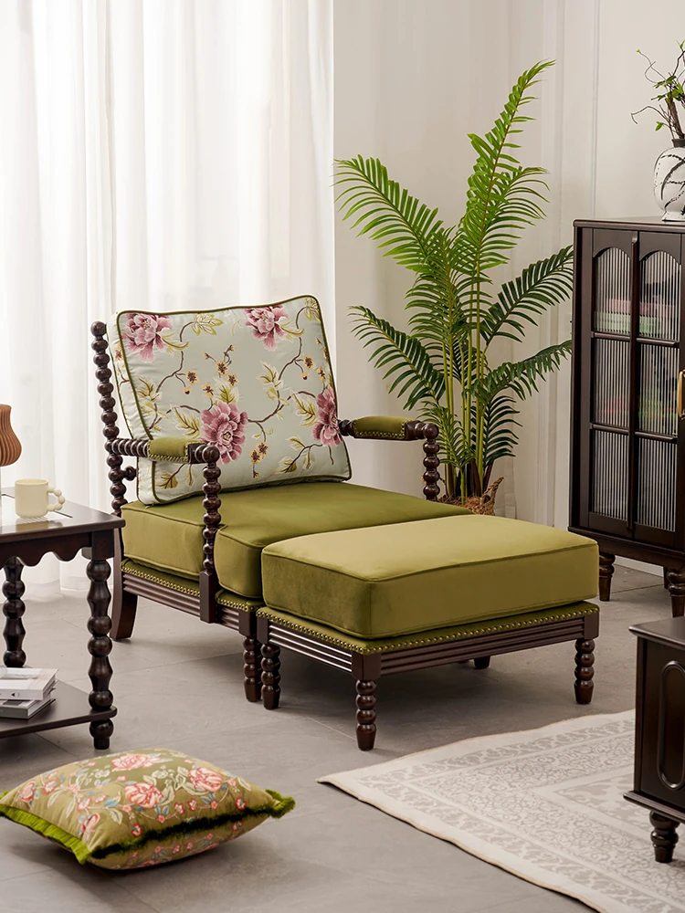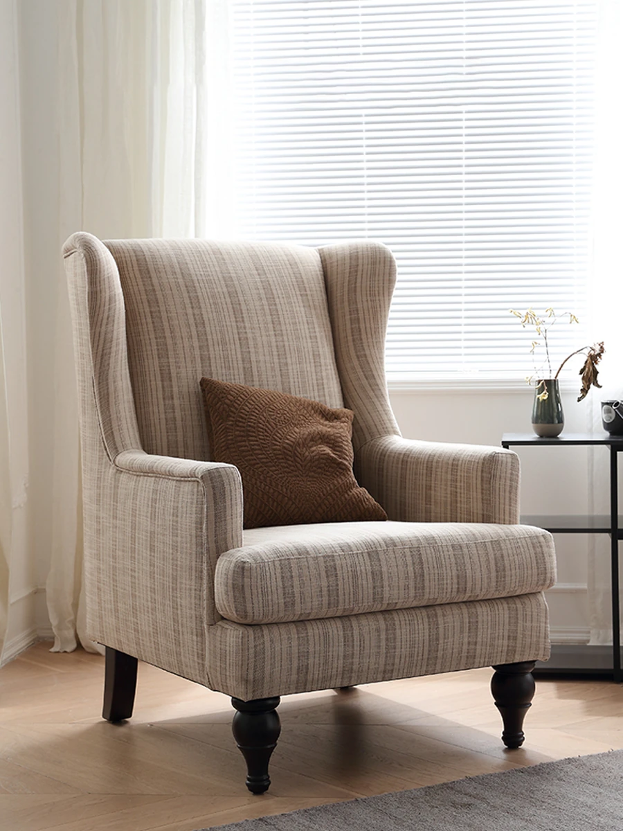 アメリカンレトロ全木製シングルソファーチェア フレンチアンティーク風 リビングルーム用おしゃれな布張りトラチェア - 快適さとスタイルを兼ね備えた特別な一脚!