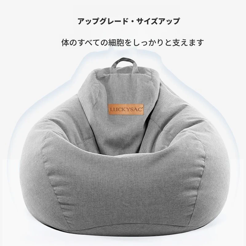ラッキーサックのリラックスソファ!豆袋型で快適なタタミスタイル、窓辺やリビング、バルコニーにぴったり。寝転がったり、座ったり、あなたのスタイルに合わせて使える一人掛け椅子。心地よいひとときをお楽しみください!
