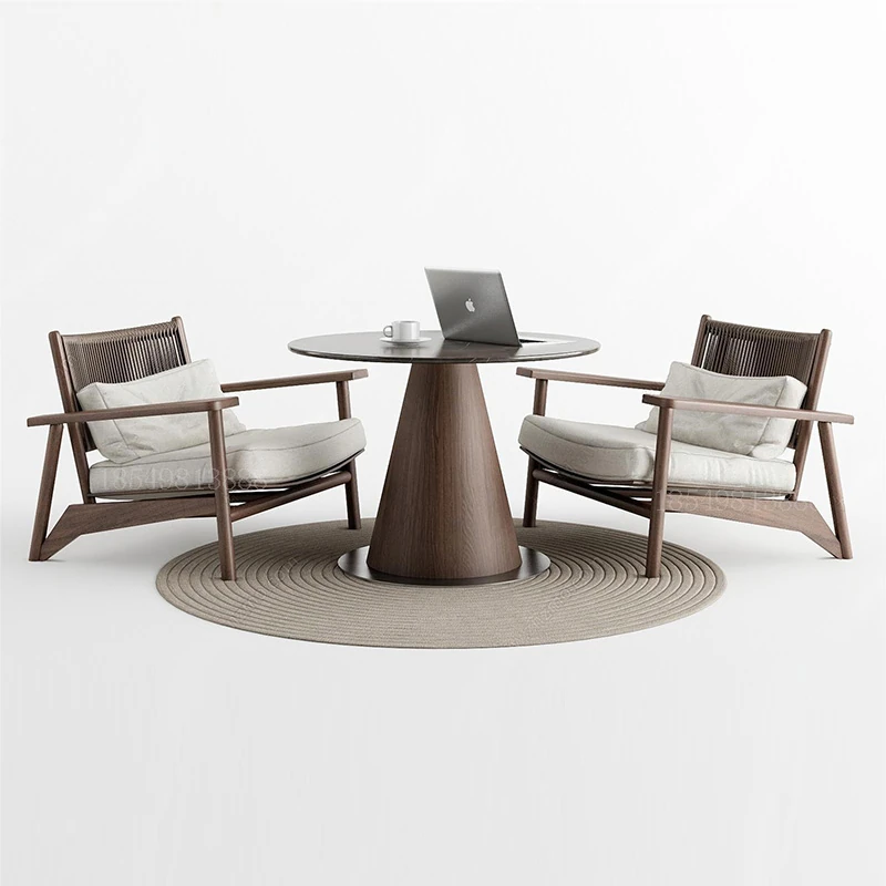 ユニークな中古風のシンプルな無垢材会客椅子 - 新中式デザインのリラクゼーションチェア。民宿やホテルのロビー、展示場にも最適な接客ソファチェアで、優雅な空間を演出します。