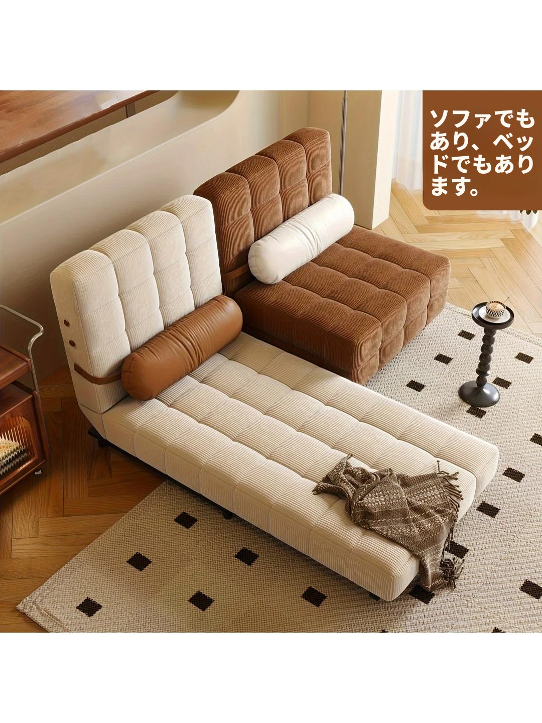 折りたたみ可能な和モダンスタイルのソファベッド、狭いスペースに最適!座っても寝ても快適、収納機能付きでお部屋もスッキリ。インスタ映え間違いなしの家用ソファです!