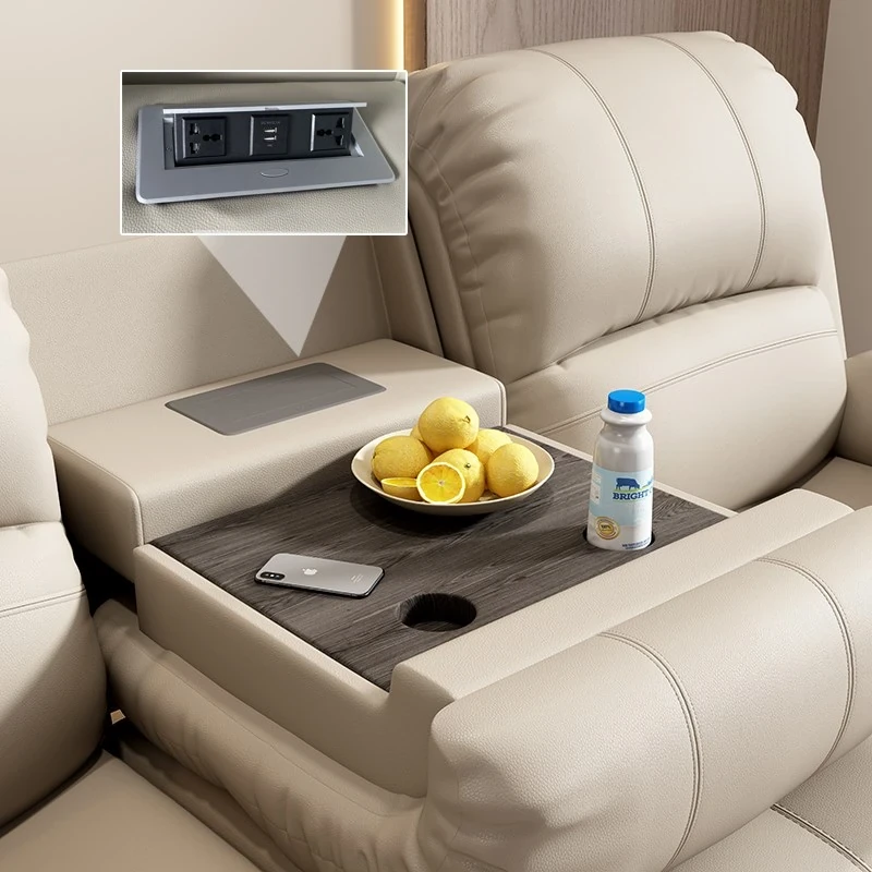 宇宙風電動カウチソファー|小さなリビングに最適なモダンでシンプルなデザイン|多機能で本革のスマートソファ|3人掛けで快適な空間を実現!