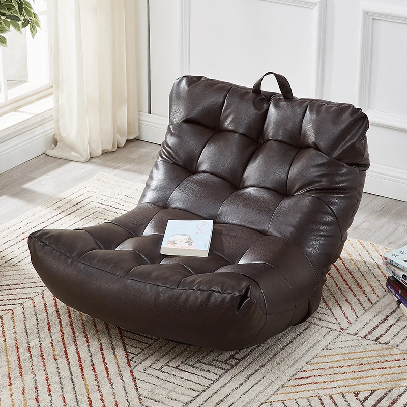 「おしゃれなリラックスソファ!折りたたみ式のタタミチェア、豆袋デザインで快適な一人掛け。小さな部屋やバルコニーにぴったりなレザー製、居心地の良い空間を演出します!」
